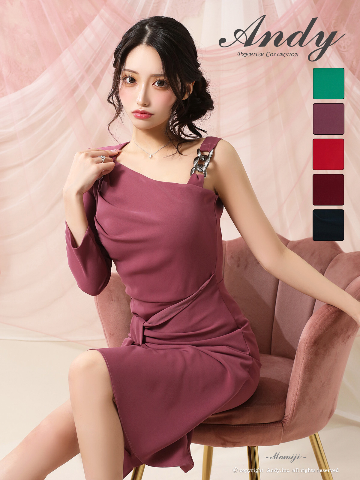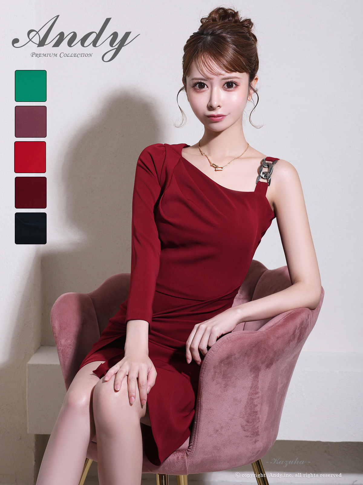 【ANDY/アンディ】 アシンメトリー/ 七分袖/ ワンショル/ シンプル/ ワンカラー/ タイト/ ミディアムドレス/ キャバドレス[OF05] [ON2958-DKP-2512]