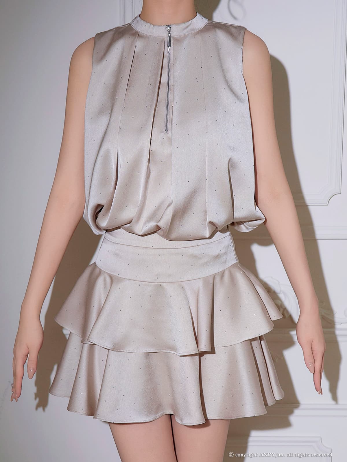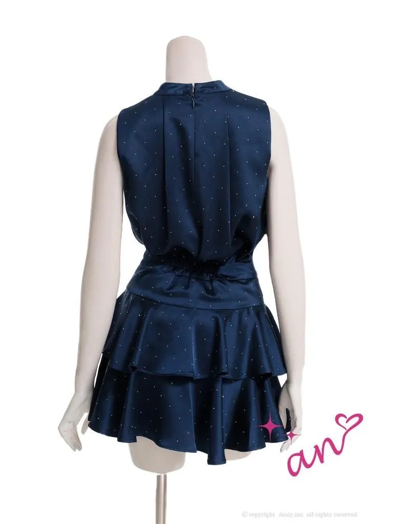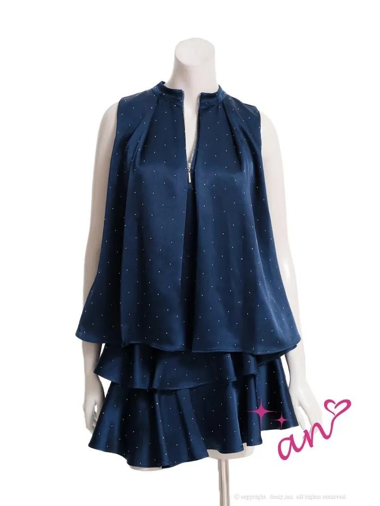 XSサイズあり【an /アン】ラインストーン/ バストジップ/ ノースリーブ/ ティアードフリル/ セットアップ/ フレア/ ミニドレス/ キャバドレス[OF05] [AOC4030-NV-2512]