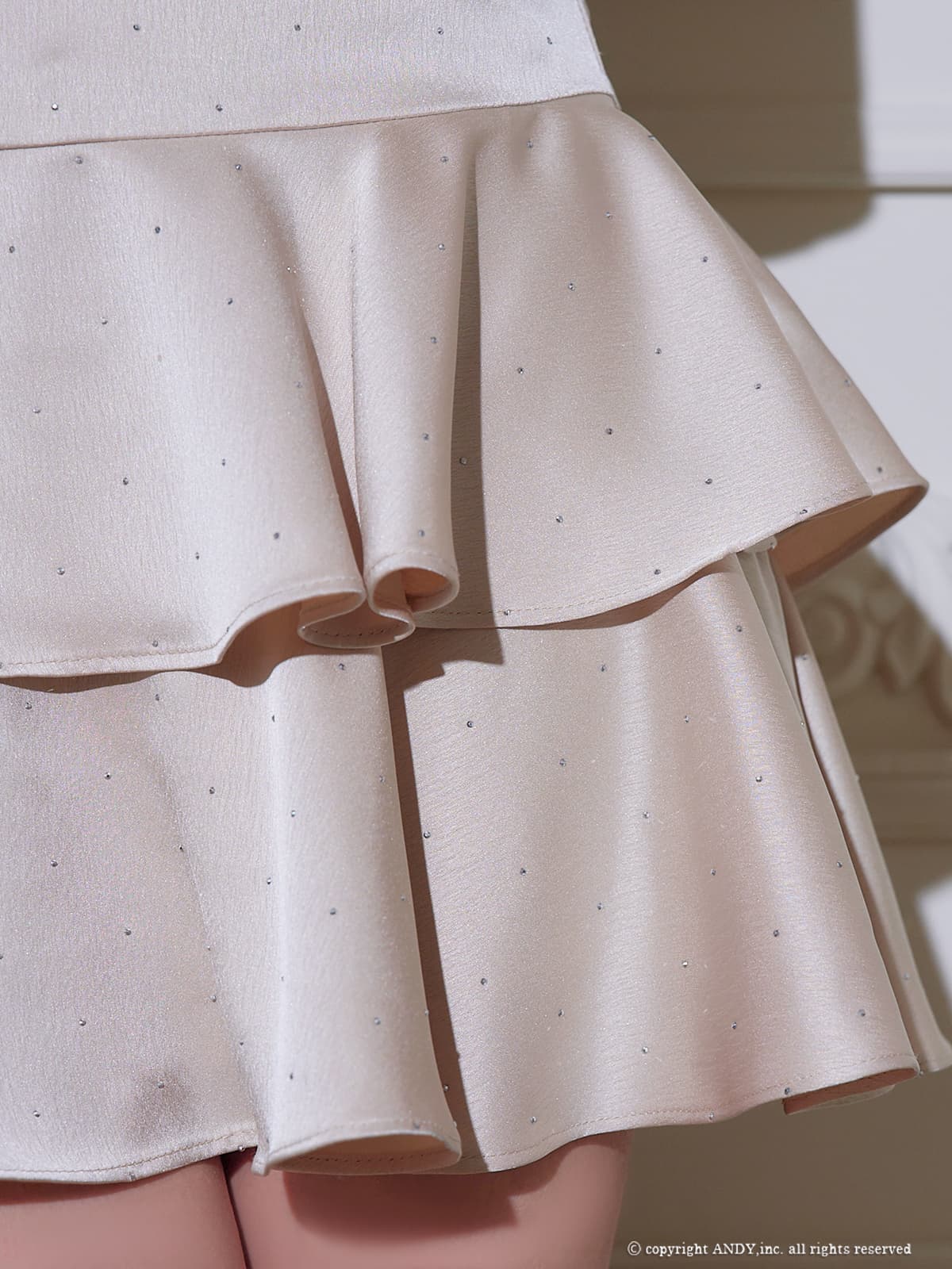 【an/アン】艶めく生地にラインストーンが輝くフレアミニセットアップ♡