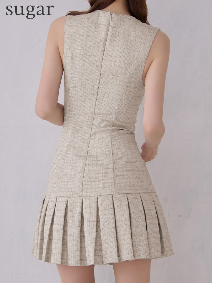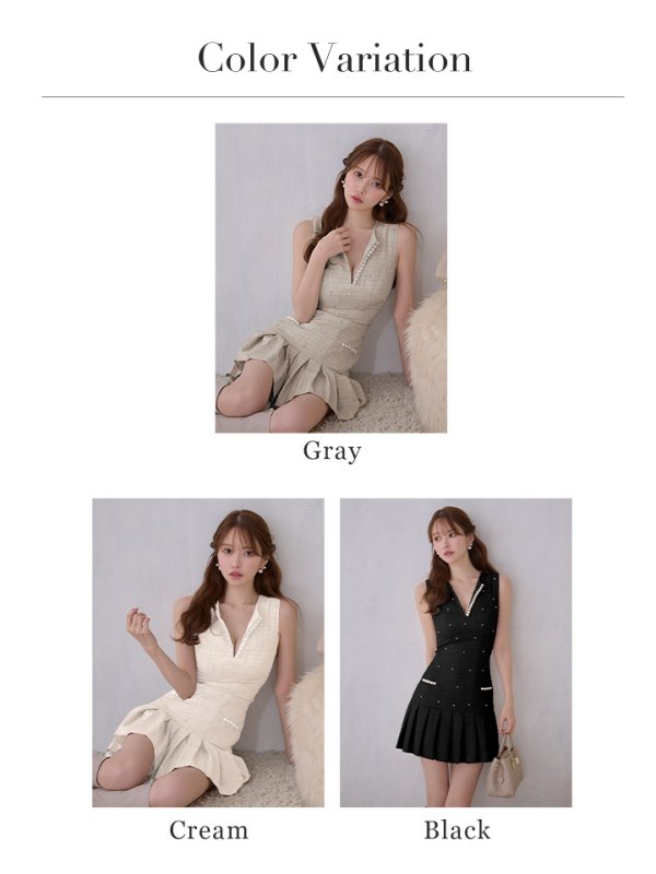 【JOLIESSE/ジョリエス】Vネック/ 銀糸/ チェック/ パール/ビジュー/ プリーツ/ フレア/ ミニドレス/ キャバドレス[HC03] [A-0351-GY-S251223]