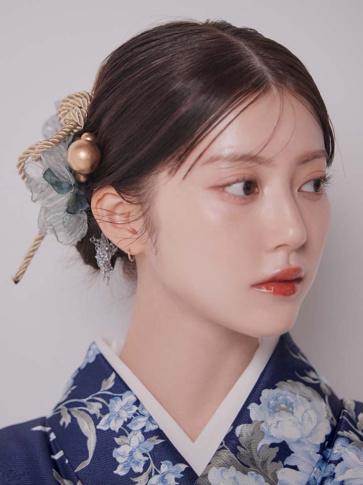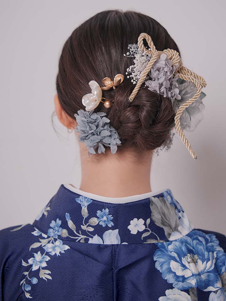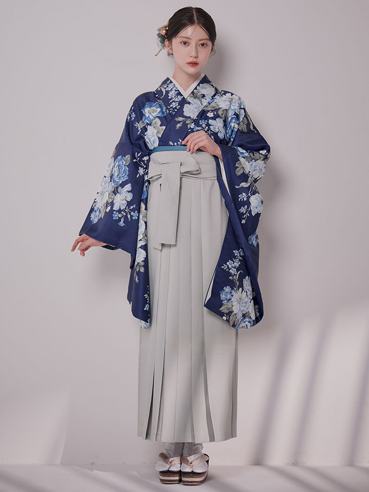 青 ブルー フラワーブーケ グレー袴 ライトグレー袴 灰色袴