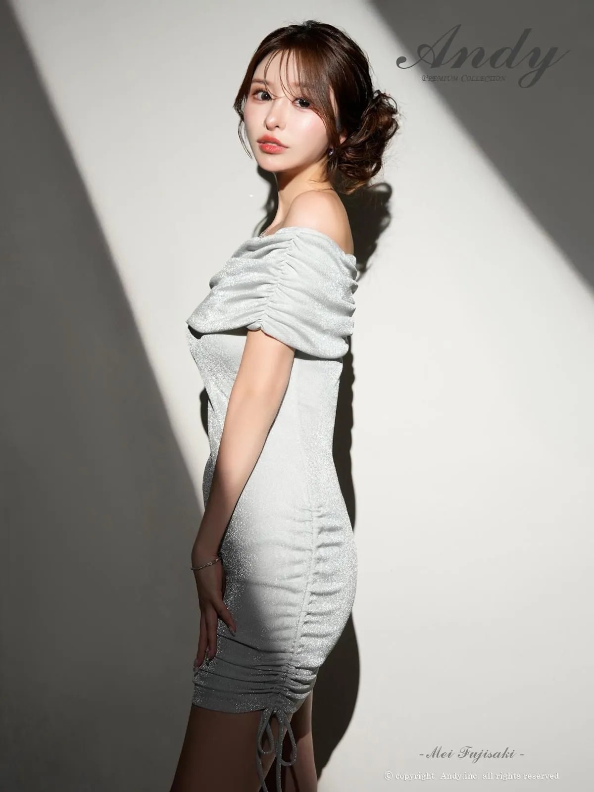 XSサイズあり【Andy /アンディ】 ラメ/ ストレッチ/ オフショル/ サイドリボン/ タイト/ ミニドレス/ キャバドレス[OF05] [ON3046-SV-2512]