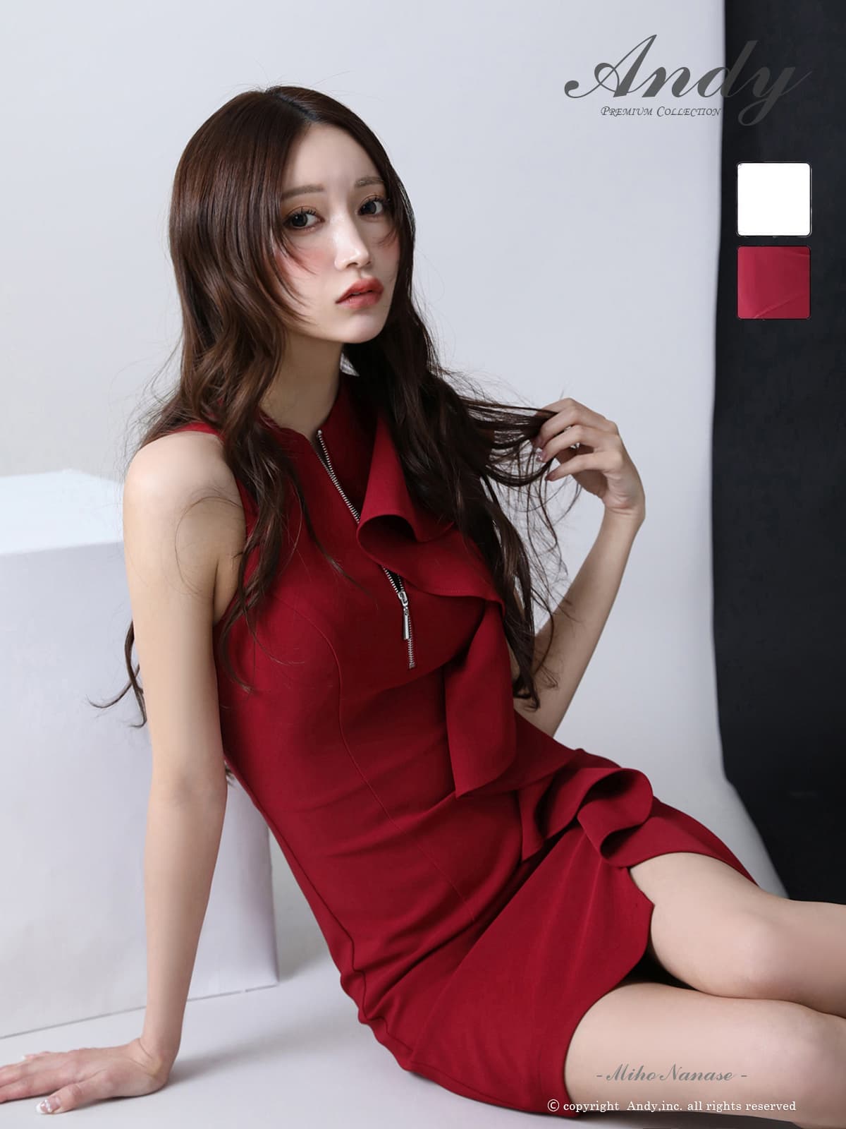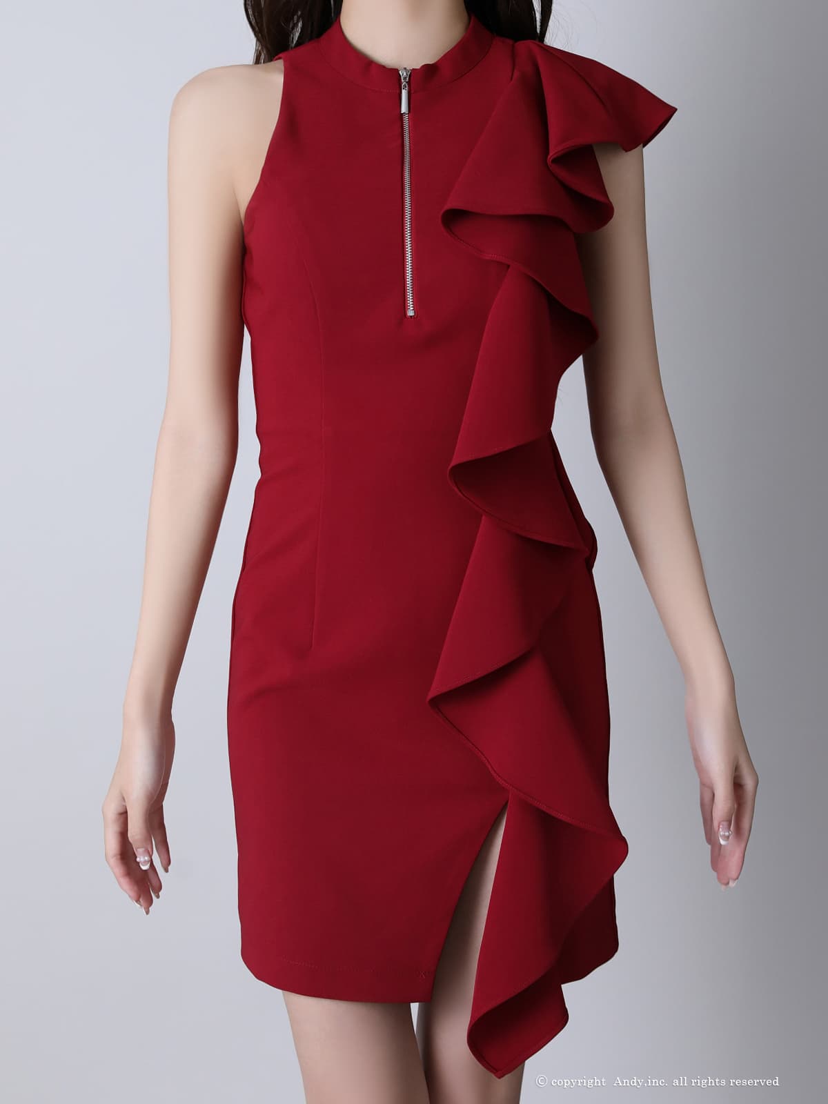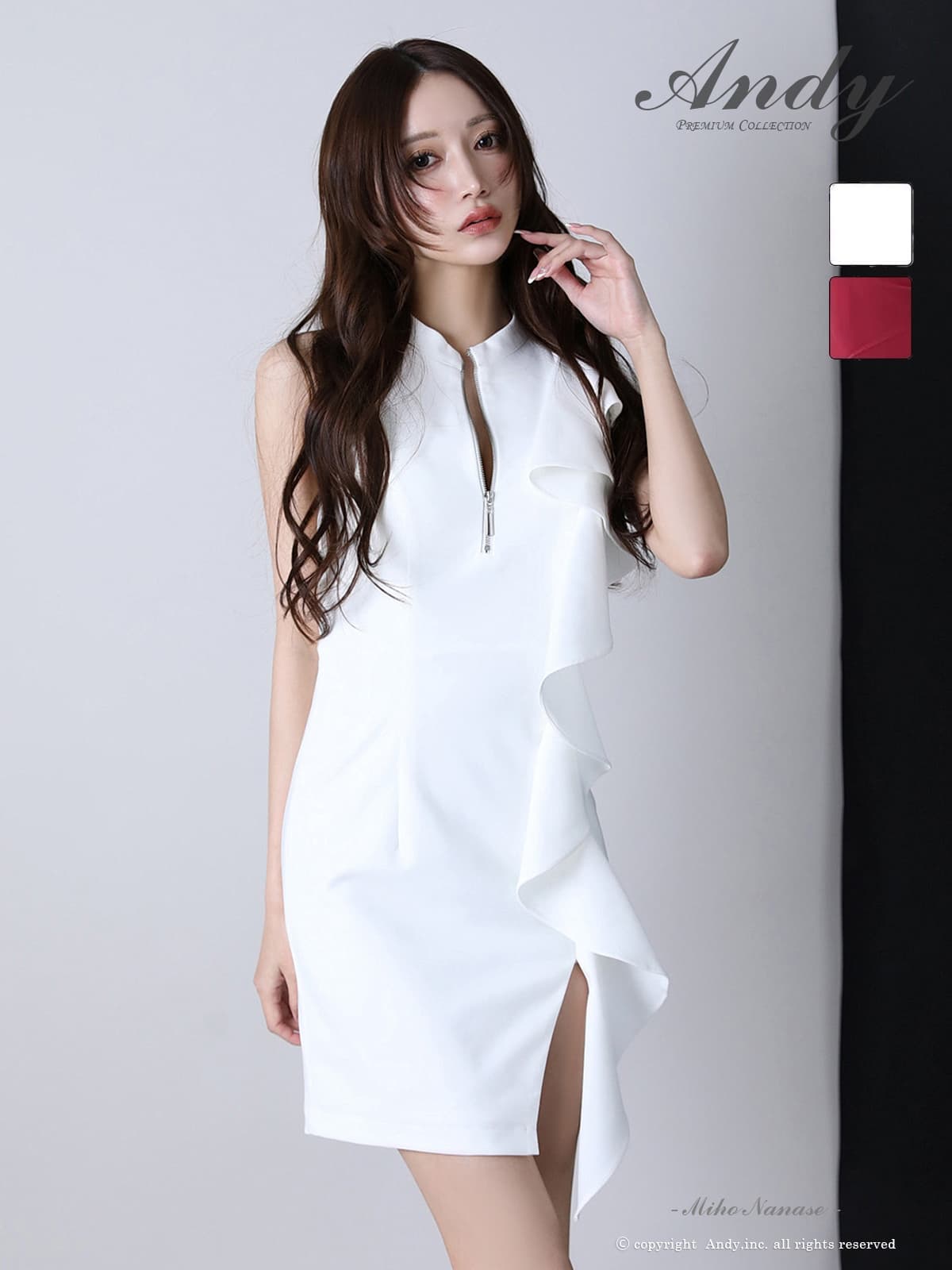 【ANDY/アンディ】スリット/ノースリーブ/ シンプル/ バストジップ/ フリルリボン/ ワンカラー/ タイト/ ミニドレス/ キャバドレス[OF05] [ON3034-W-2512]