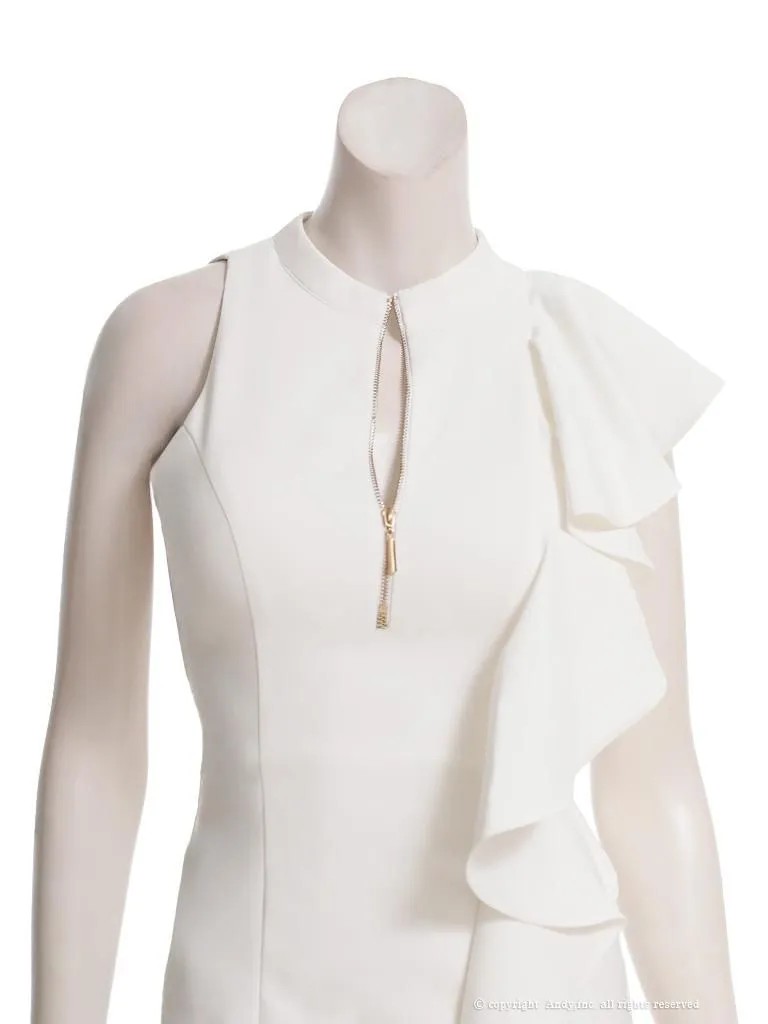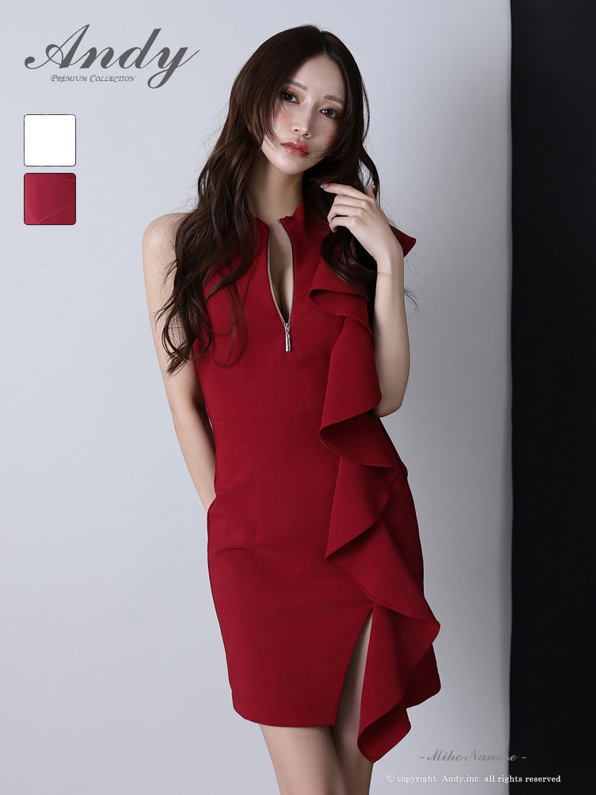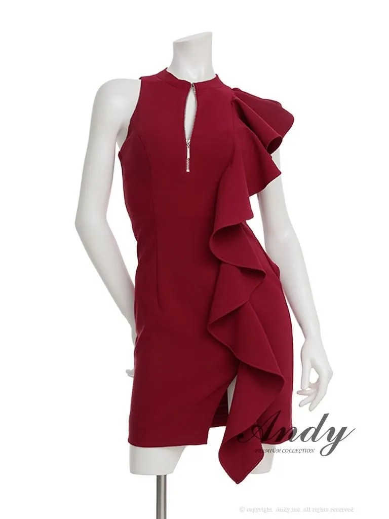 【ANDY/アンディ】スリット/ノースリーブ/ シンプル/ バストジップ/ フリルリボン/ ワンカラー/ タイト/ ミニドレス/ キャバドレス[OF05] [ON3034-W-2512]