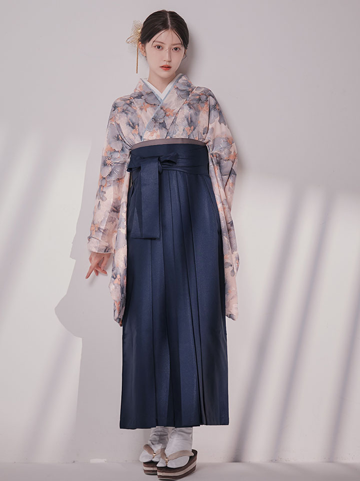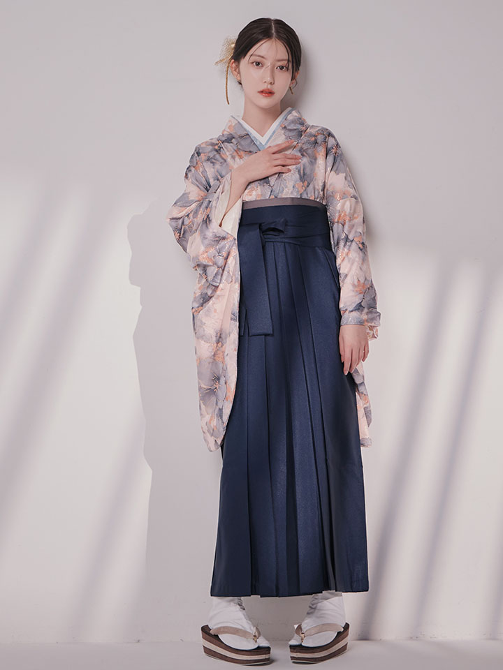 【予約商品 / 1月中旬発送予定】グレーピンクフラワー グラデーション二尺袖着物【卒業袴3点セット 二尺袖着物/帯/袴】 [HR-117-ok-GY-F-25EN-251224]