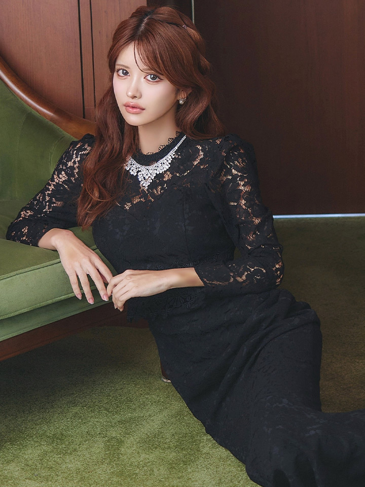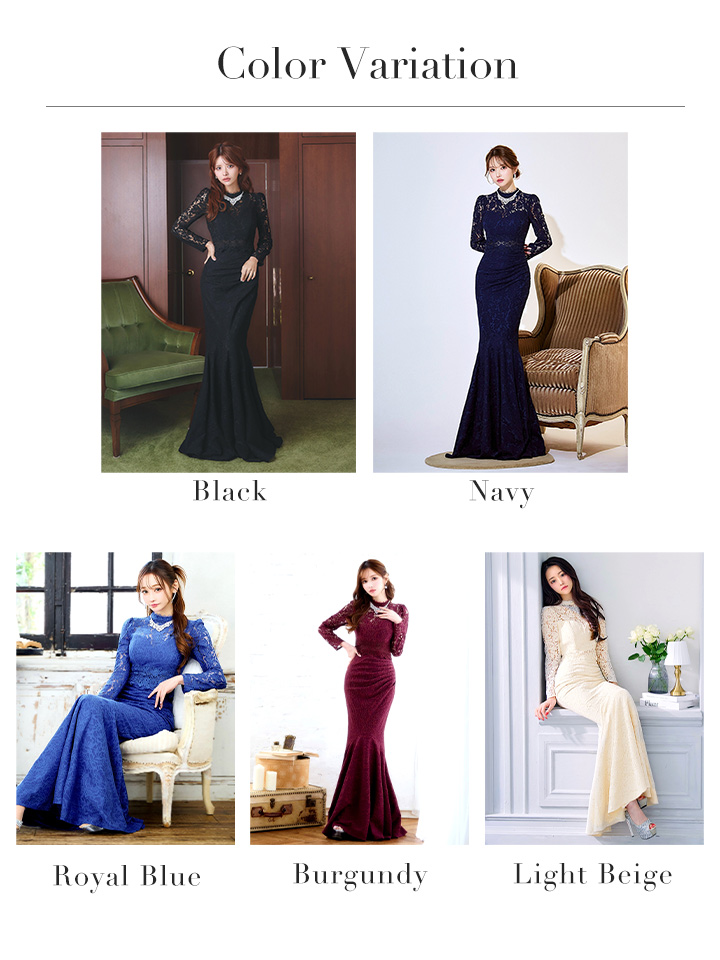ハイネックがクラシカルな雰囲気の総レースロングドレス♡
