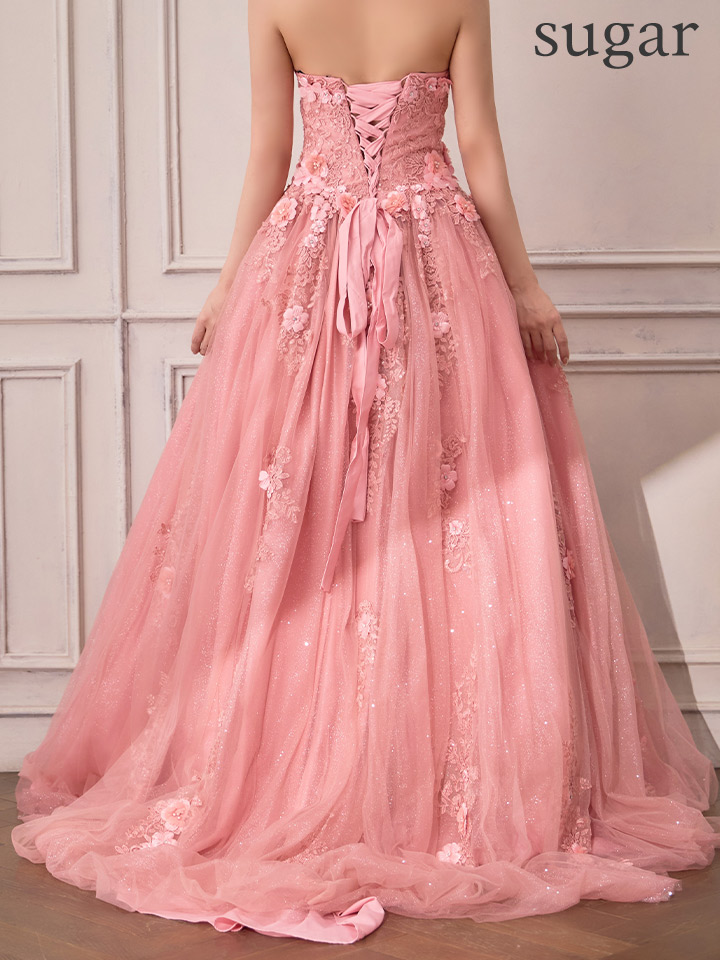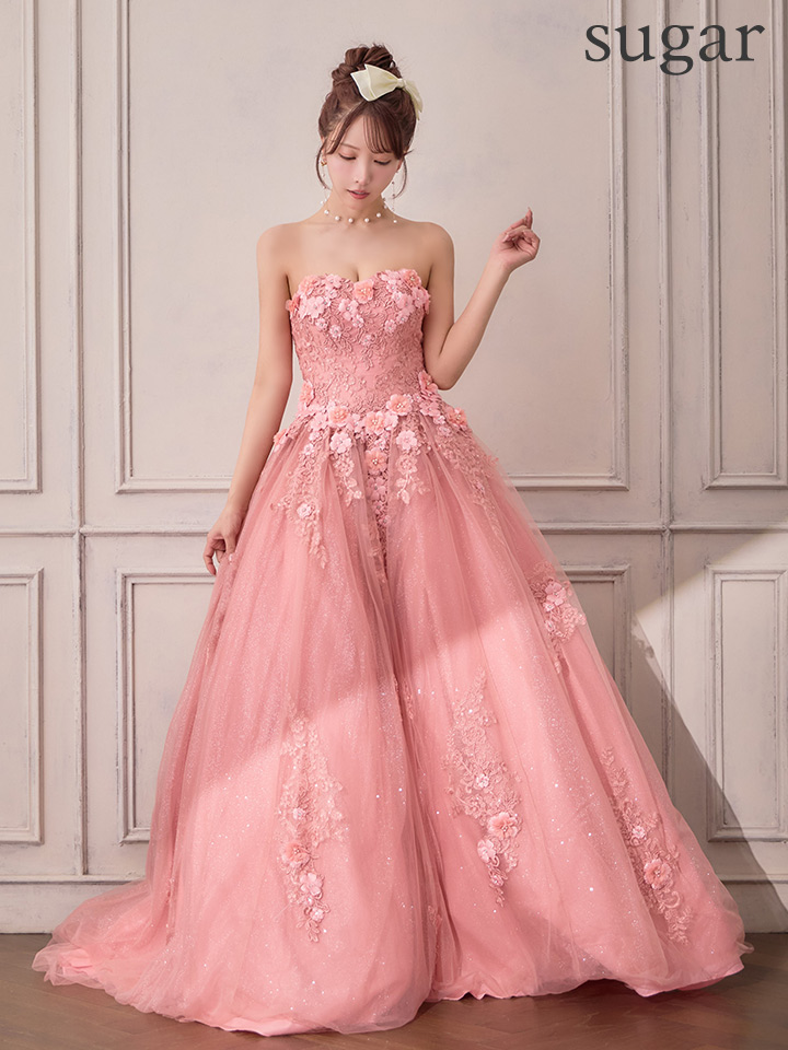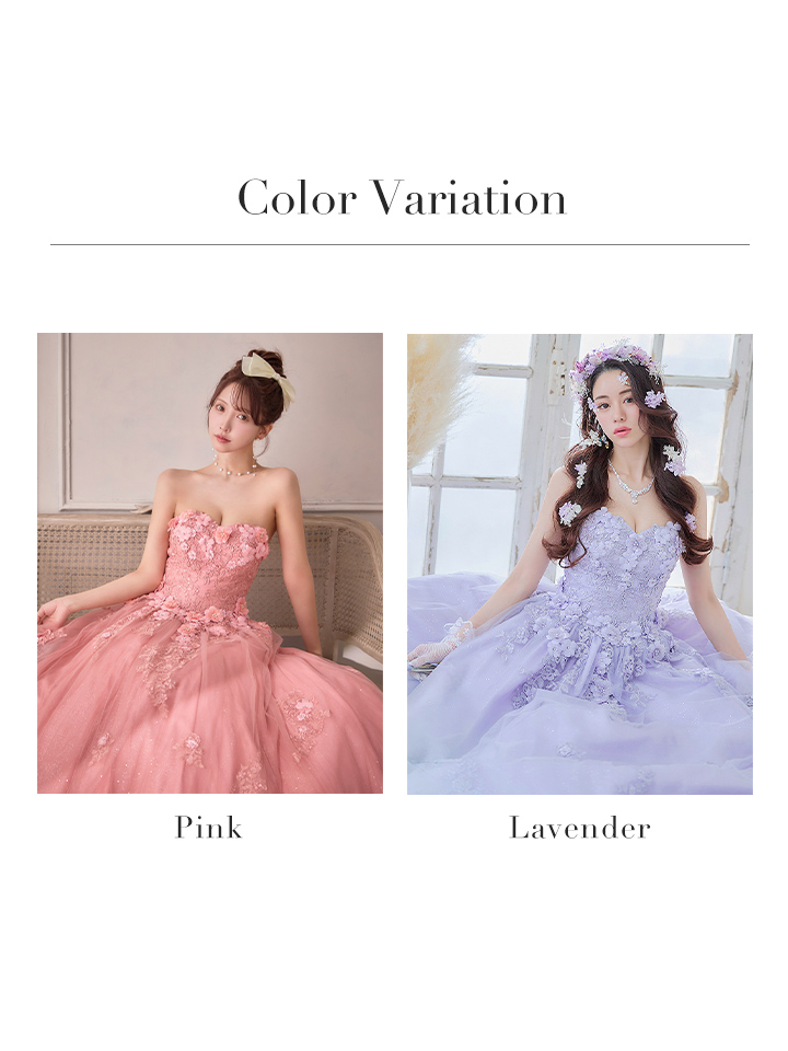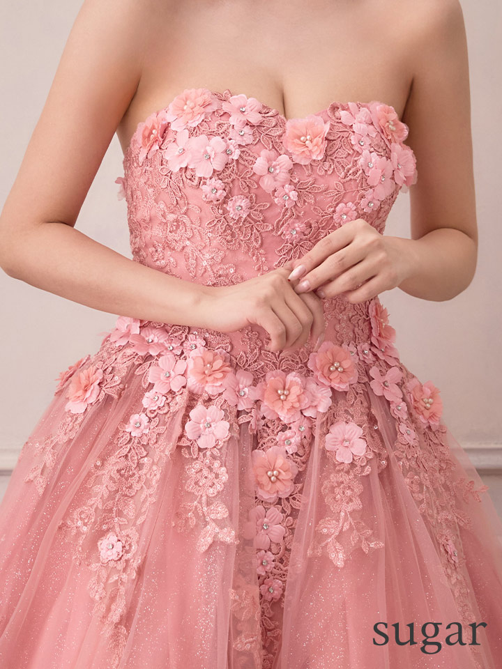 フェミニンで清純な雰囲気が溢れるドレスは周囲の視線を独り占めする事間違いなしの仕上がりです。