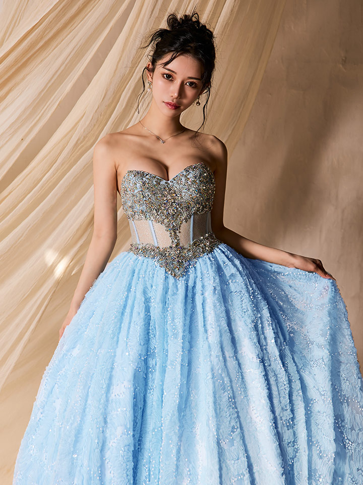 贅沢なビジュー使いが高級感溢れるプリンセス仕様のウエディングドレス。