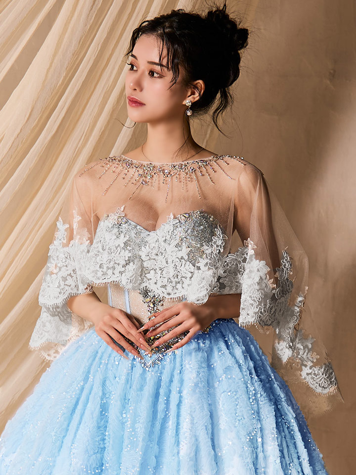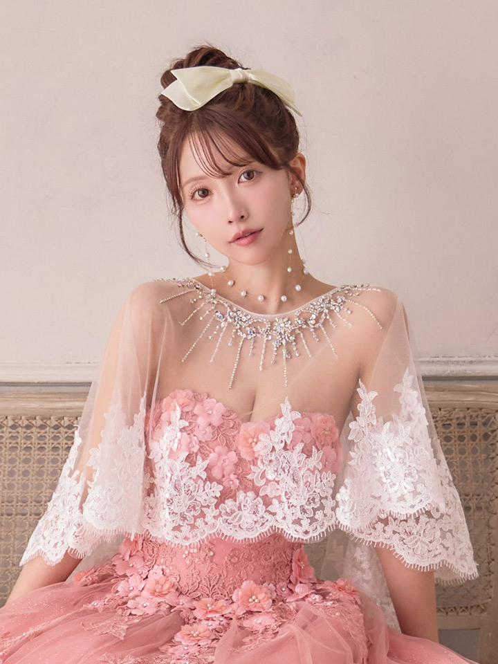 華やかな刺繍と首元の煌めくビジューが高級感をプラスする上品な仕上がり。