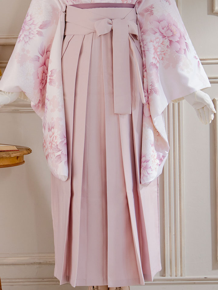 【予約商品 / 1月中旬発送予定】ピンク牡丹×菊 ペールピンク二尺袖着物【卒業袴3点セット 二尺袖着物/帯/袴】 [HR-102-ok-P-F-25MY-251229]