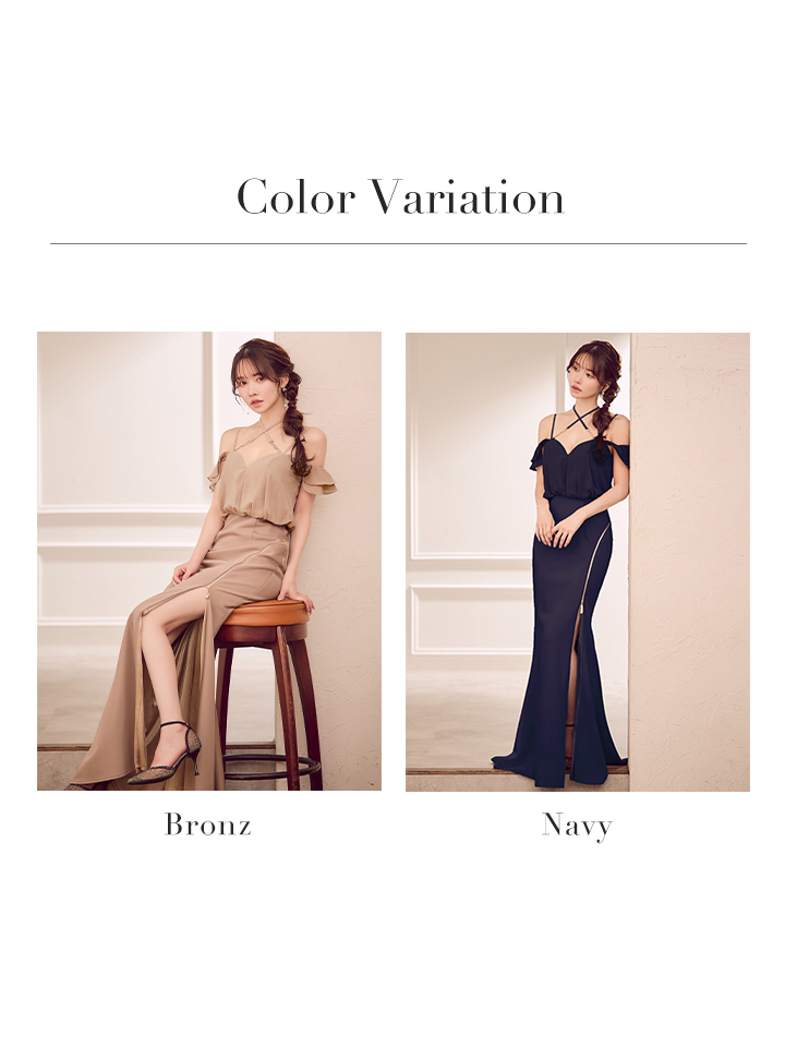sugarオリジナルカラーあり【IRMA/イルマ】クロスネック/ キャミ/ オフショル/ シフォン/ タイト/ スリット/ ロングドレス/ キャバドレス long[OF2A] [55089-IR-Bronz-S2512]