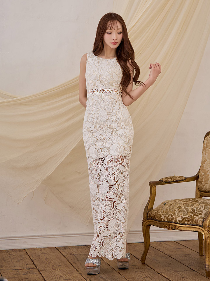 XS-Lサイズあり【SETTAN/セッタン】総レース/ ハイウエスト/ シアー/ インナーミニ/ ストレートライン/ タイト/ ロングドレス / キャバドレス long[OF2] [LKS25298-W-S2512]