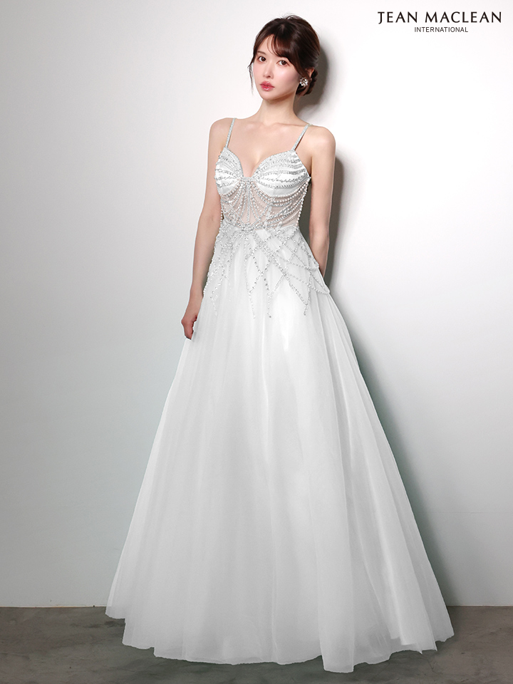【JEAN MACLEAN/ジャンマクレーン】ラインストーン/ ビジュー/ パール/ シアー/ チュール/ キャミソール/ フレア/ Aライン/ プリンセス/ ロングドレス/ キャバドレス long[OF2A] [51004-JM-W-2601]