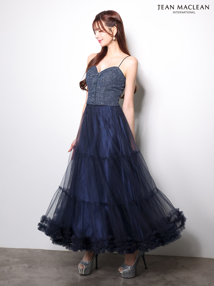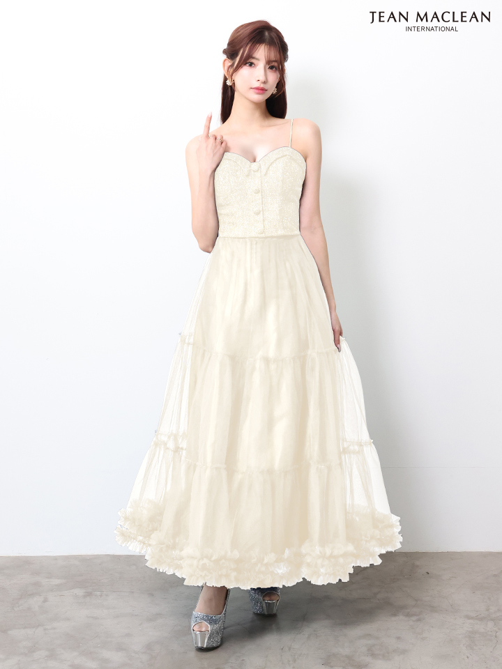 XSサイズあり【JEAN MACLEAN/ジャンマクレーン】ラメツイード/ ツイード/ キャミソール/ ティアード/ チュール/ フレア/ Aライン/ ロングドレス/ キャバドレス long[OF2A] [51995-JM-CHP-2601]
