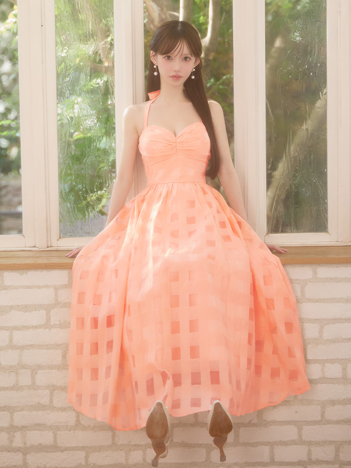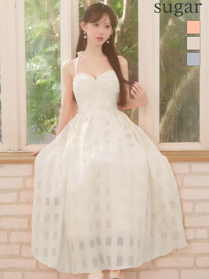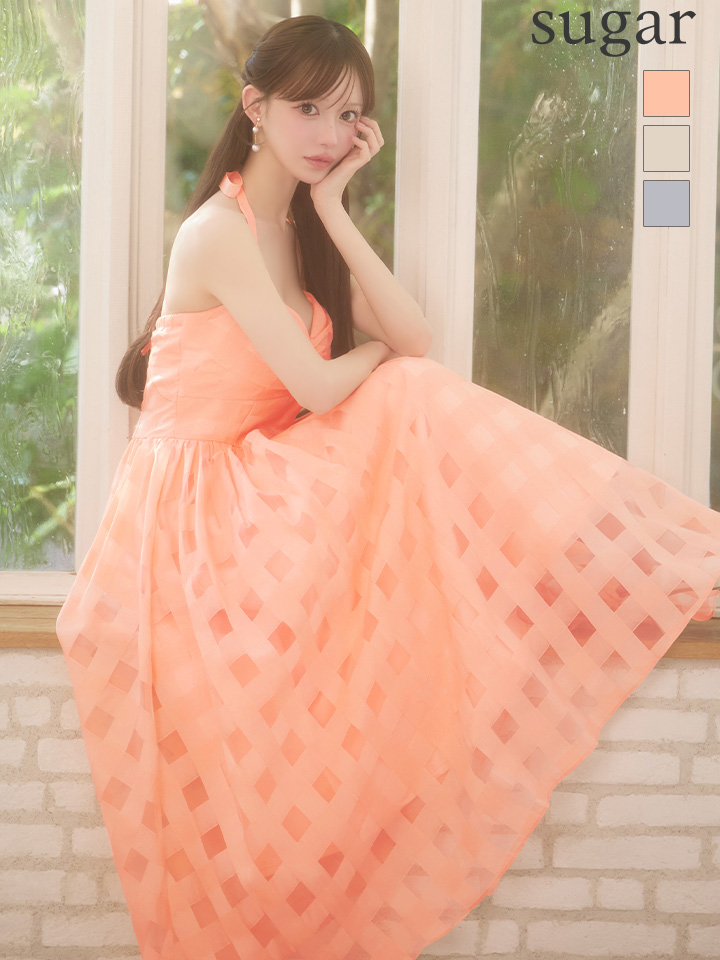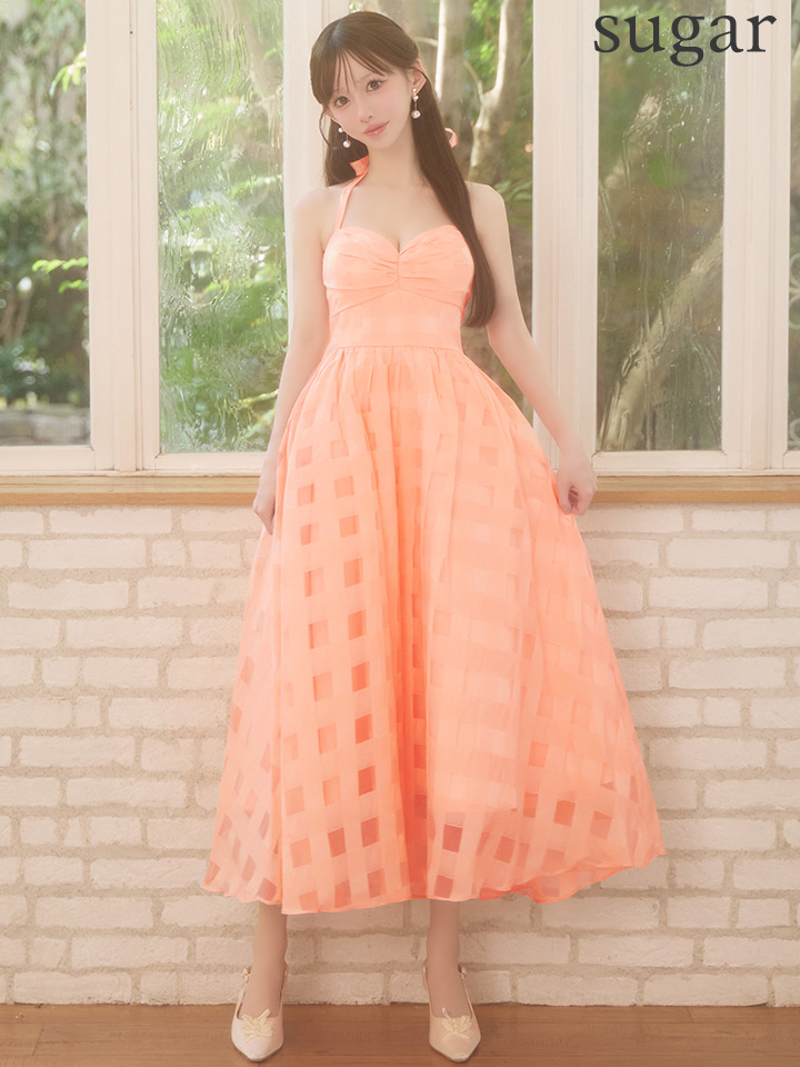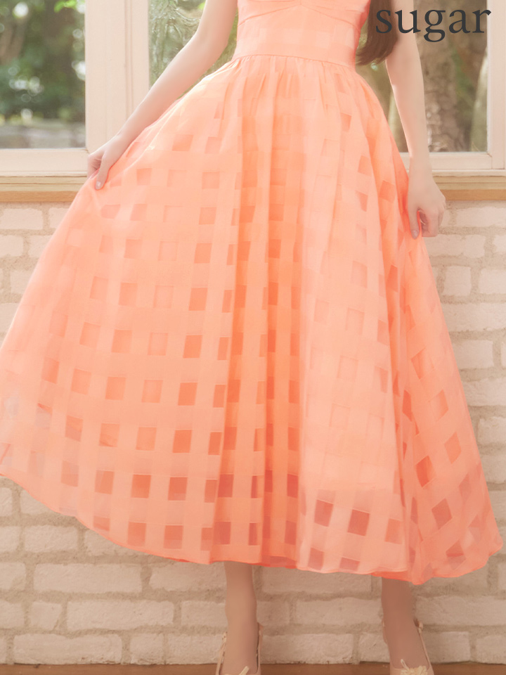 Lサイズあり【DEA./ディア】ギンガムチェック/ オーガンジー/ フレア/ ロング/ ワンピース/ ミモレ丈/ マキシ丈/ ミディアムドレス/ キャバドレス long[OF08] [DE3784-IV-S260109]