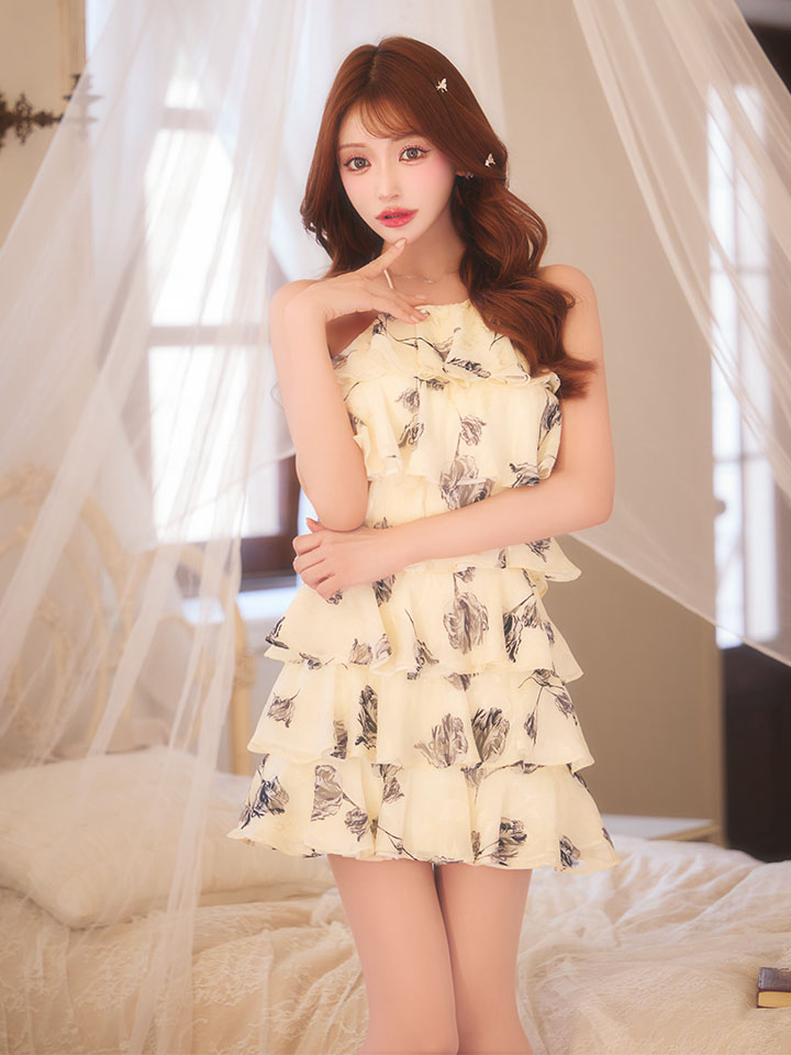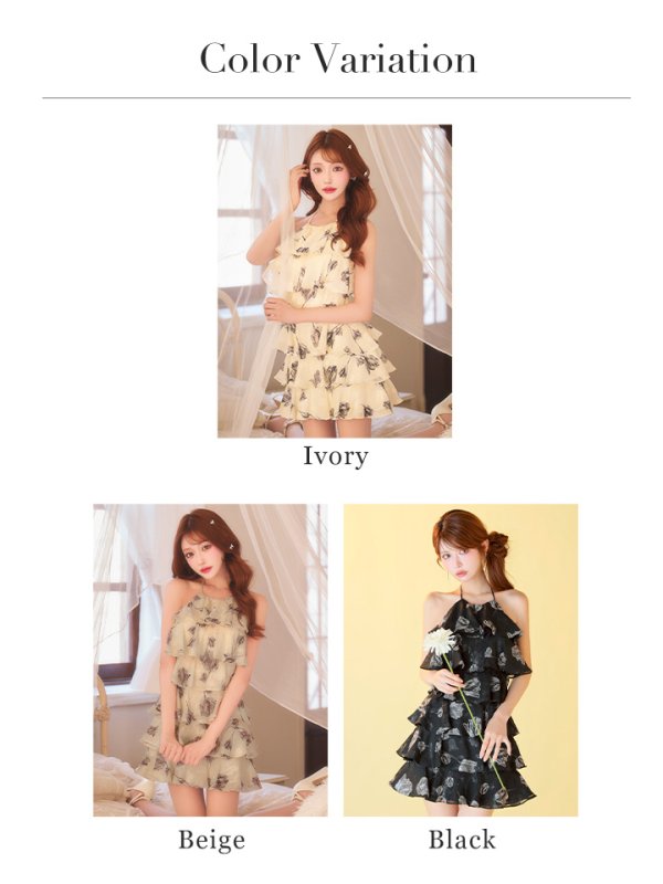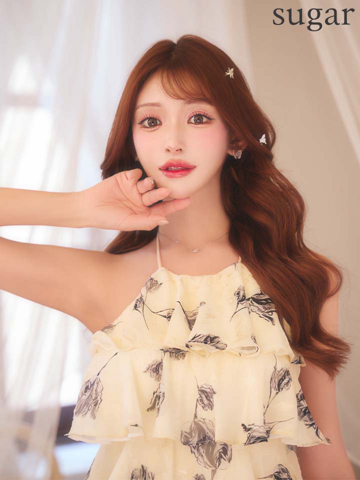 #キャバクラ #キャバ嬢 #キャバクラドレス #花柄 #シフォン #フレア #ホルターネック #フリル