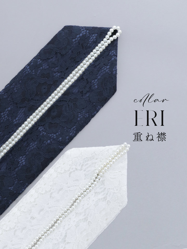 【卒業袴用重ね襟】パール付きレース【2カラー】 [ERI-104-ok-W-F-ERI-105-ok-NV-F-260109]