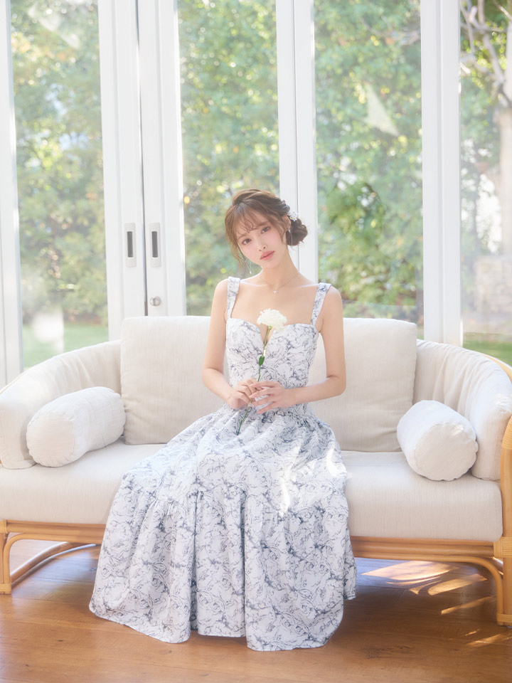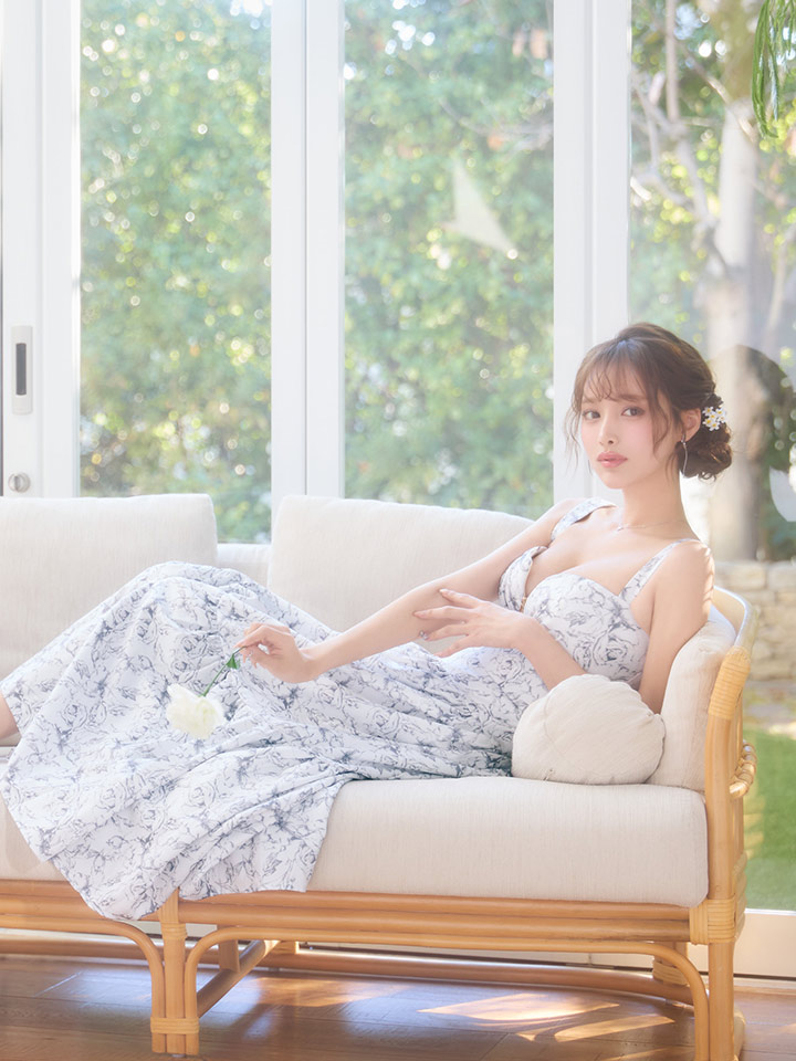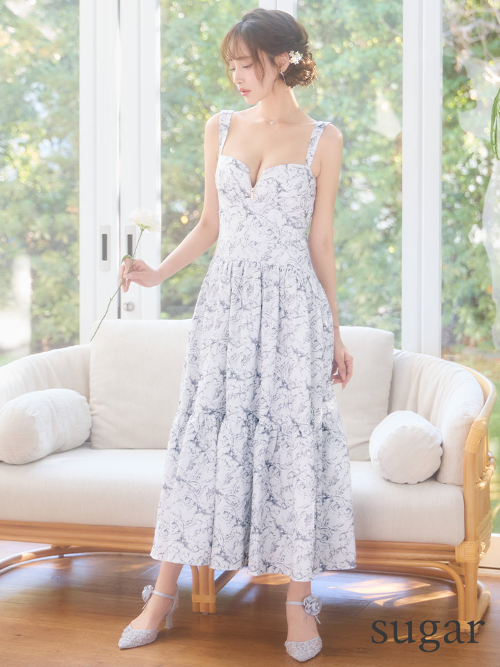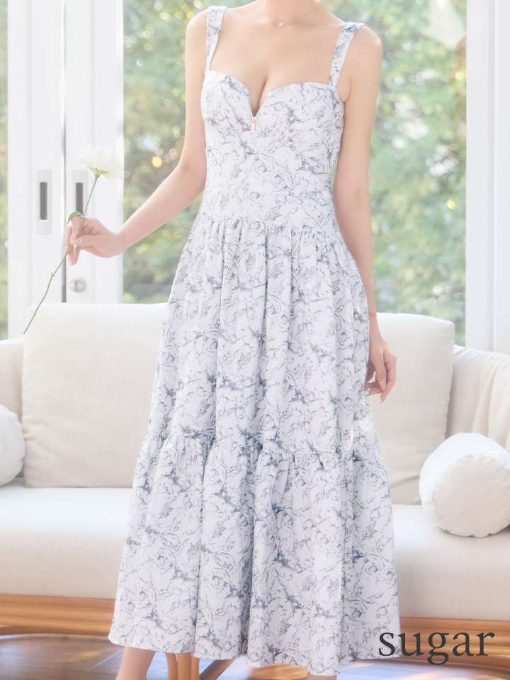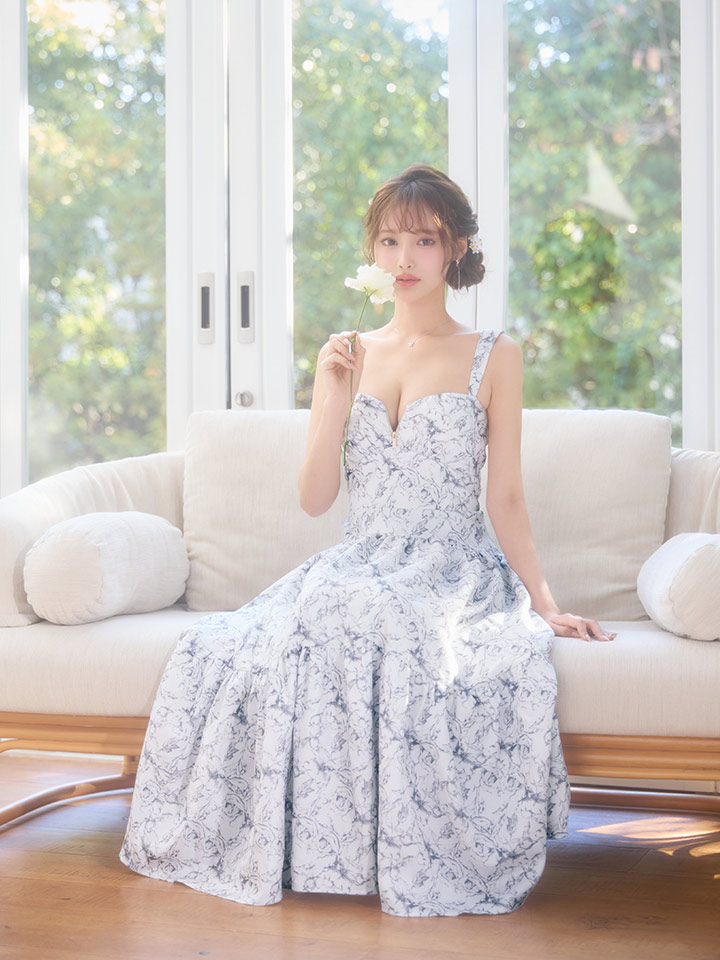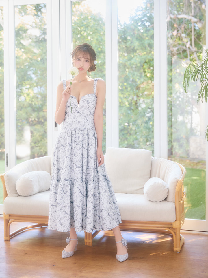 Lサイズあり【DEA./ディア】花柄バストジップ/ フレア/ ロング/ ワンピース/ マキシ丈/ ミディアムドレス/ キャバドレス long[OF08] [DE3778-BE-S260109]