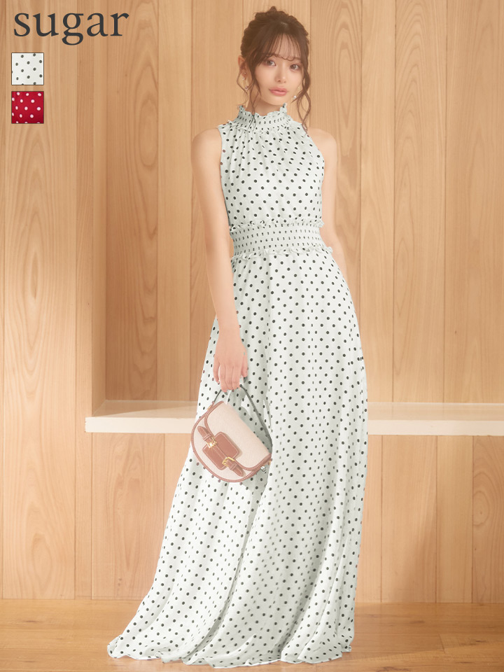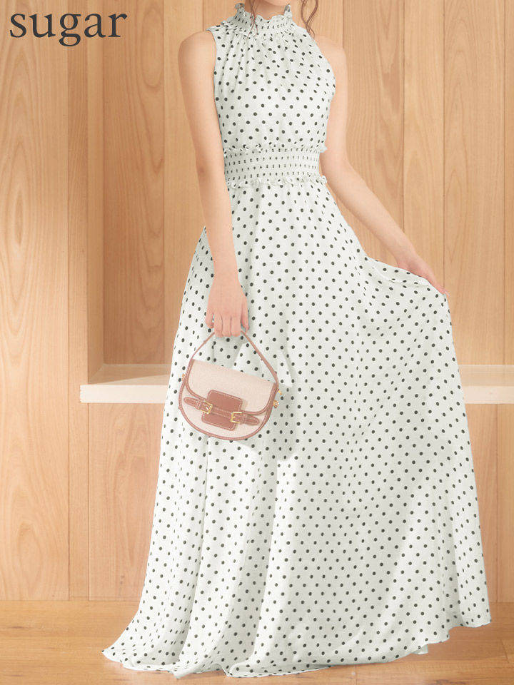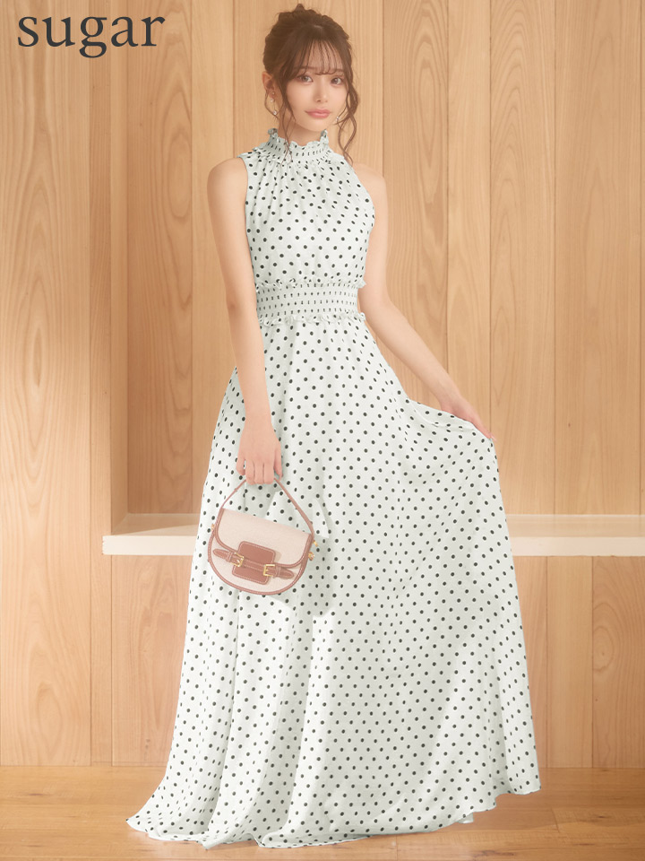 ドット柄が可愛い大人ガーリーなロングドレス♡