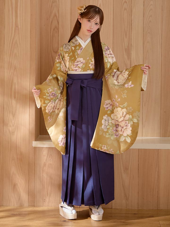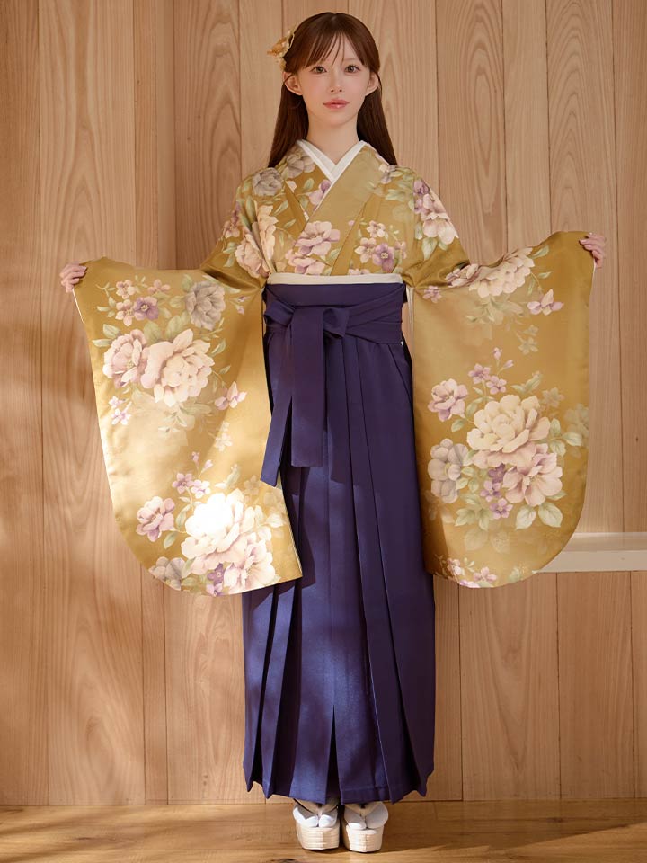 【予約商品 / 1月中旬発送予定】黄フラワーブーケ イエロー二尺袖着物【卒業袴3点セット 二尺袖着物/帯/袴】 [HR-113-ok-MUS-F-26CC-260110]