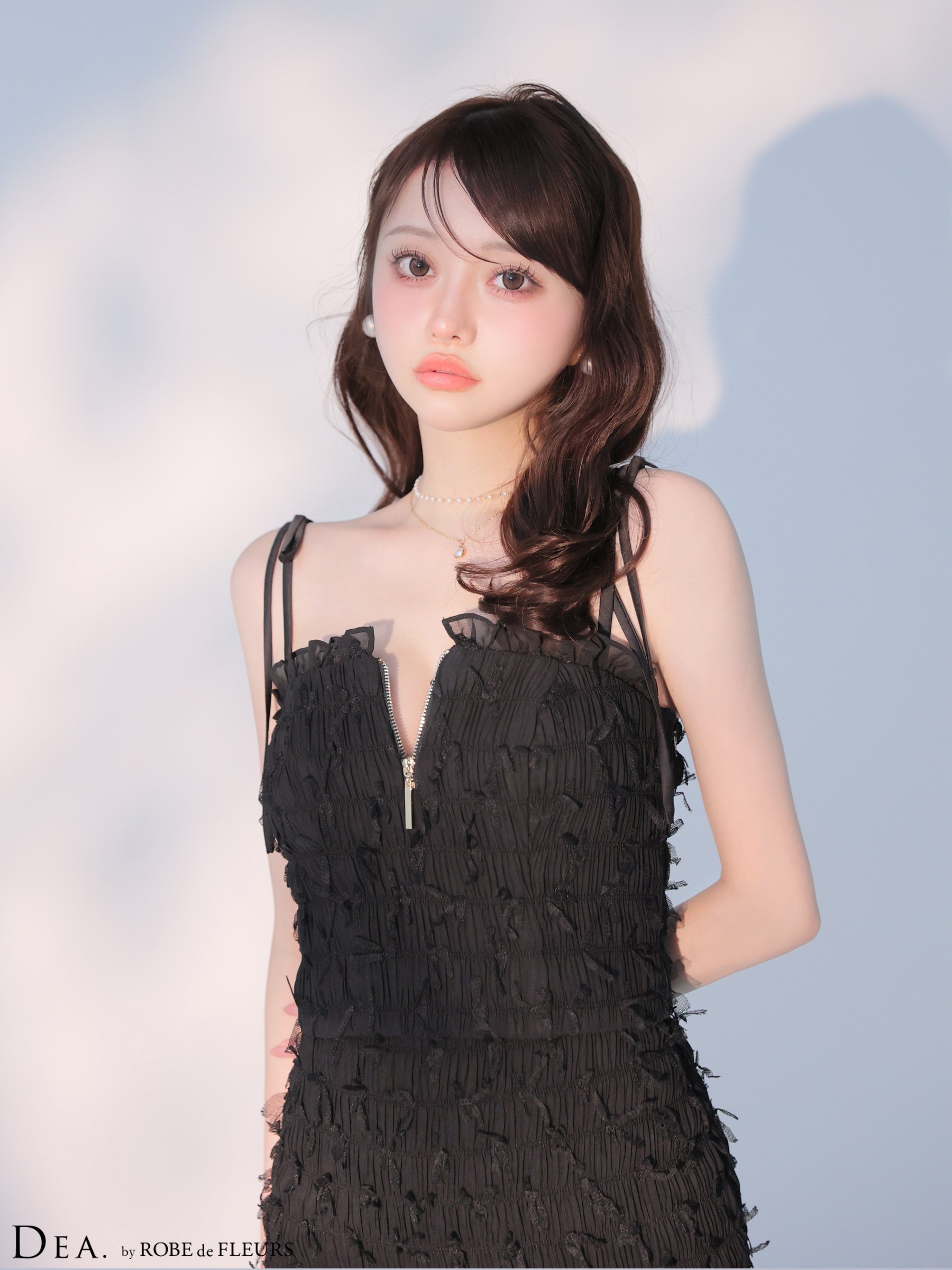 【予約商品/1月下旬発送予定】【DEA./ディア】立体チュール/ フロントジップ/ ワンピース/ キャミソール/ ツーピース/ タイト/ ミディアムドレス/ キャバドレス[OF08] [DE4348-IV-S260109]