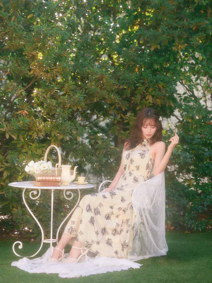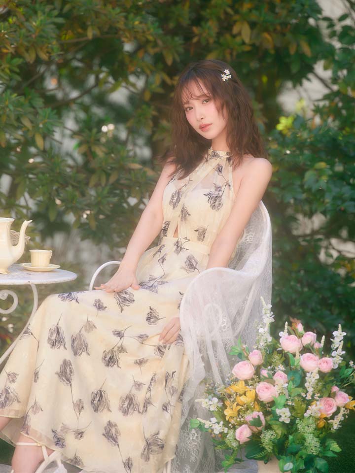 #キャバクラ #キャバ嬢 #キャバクラドレス #ジャガード #シフォン #ホルターネック #花柄 #ロングワンピ
