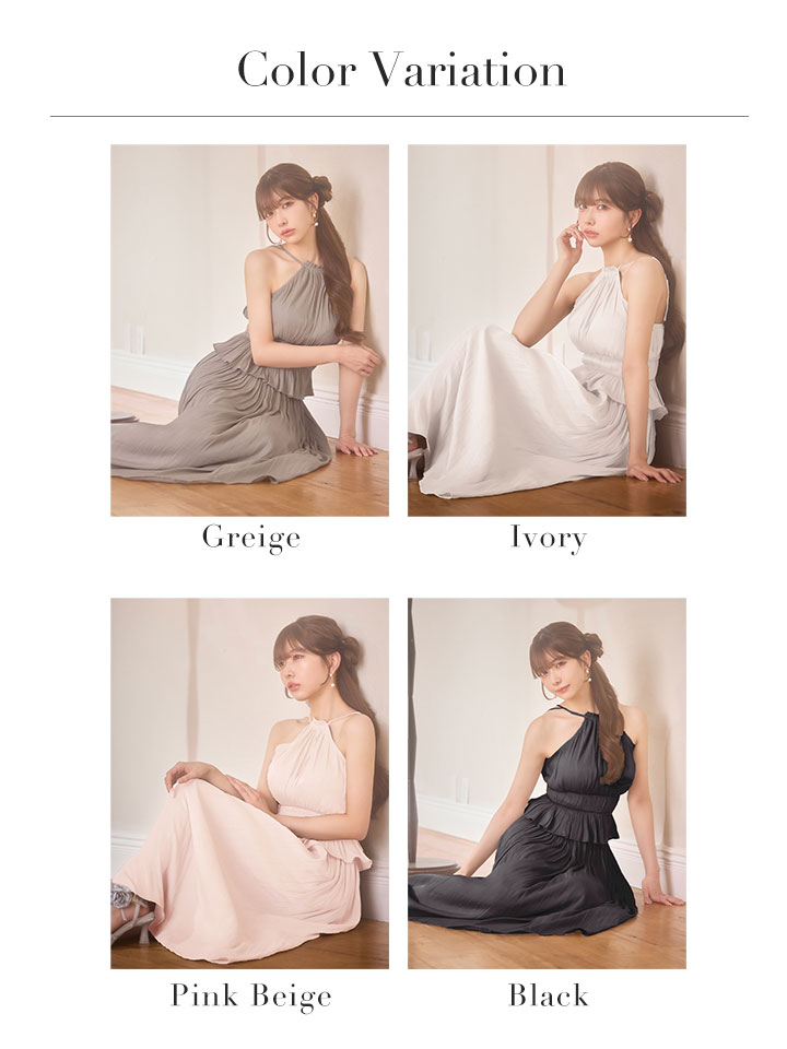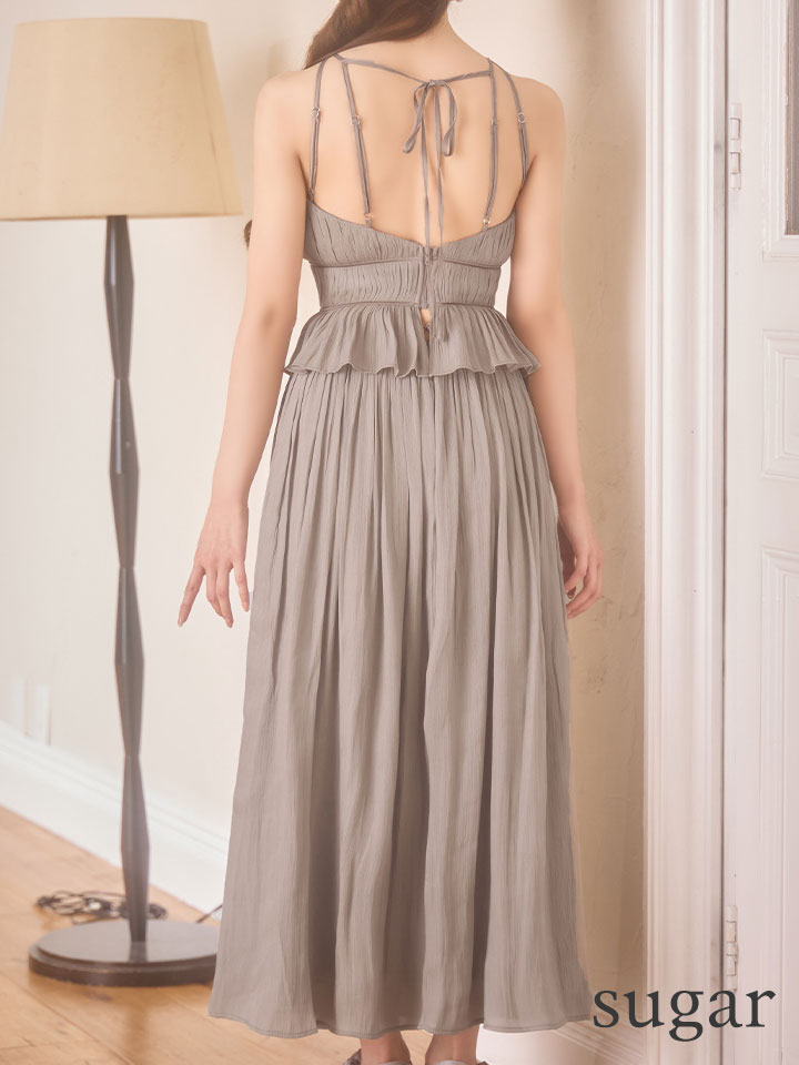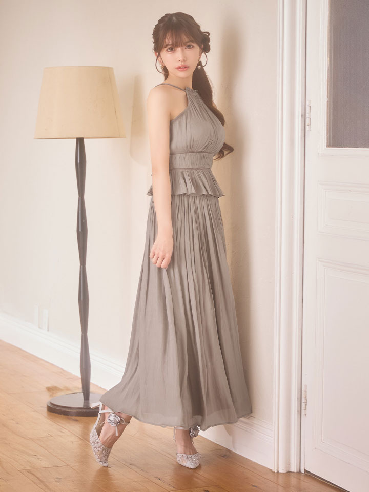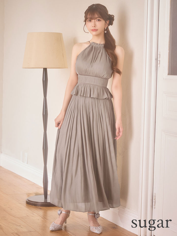【予約商品/2月中旬発送予定】XS-Lサイズあり【DEA./ディア】ラメ/ シフォン/ プリーツ/ ホルターネック/ ツーピース/ ペプラム/ ワンピース/ ミモレ丈/ ミディアムドレス/ キャバドレス long[OF08] [DE4344-PBE-S260109]