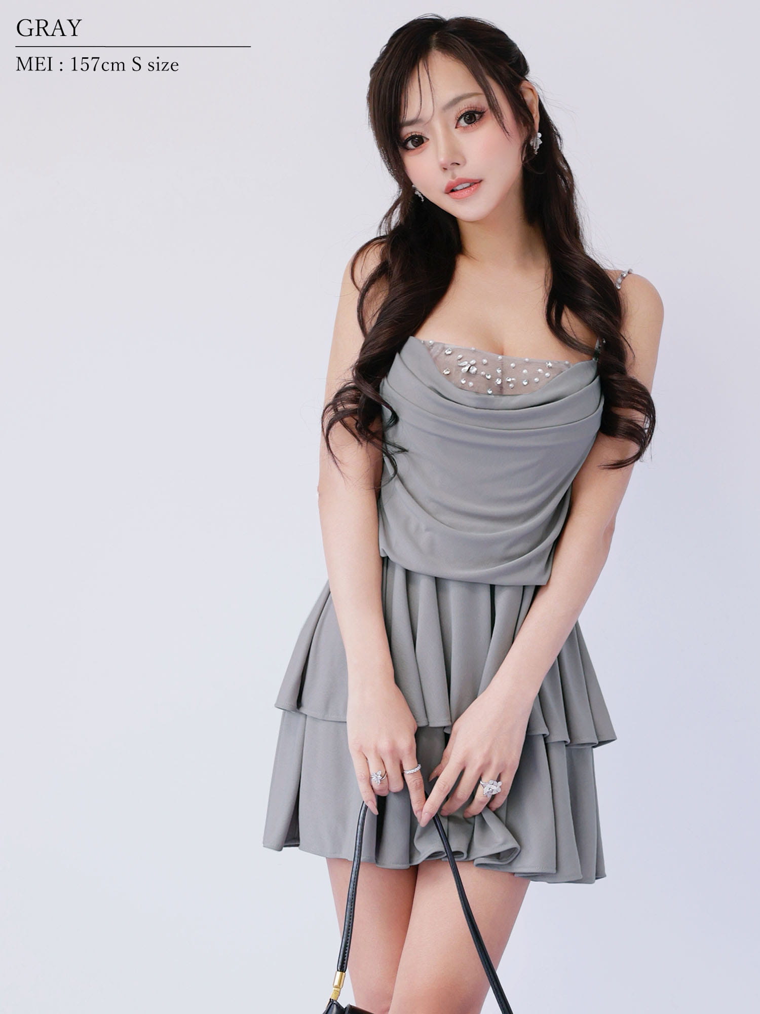 【予約商品/1月中旬-1月下旬発送予定】XSサイズあり【ANGEL R/エンジェルアール】フロントドレープ/ バストビジュー/ フリル/ メッシュ/ フレア/ マイクロミニドレス/ キャバドレス[OF2] [AR26203-GY-2601]