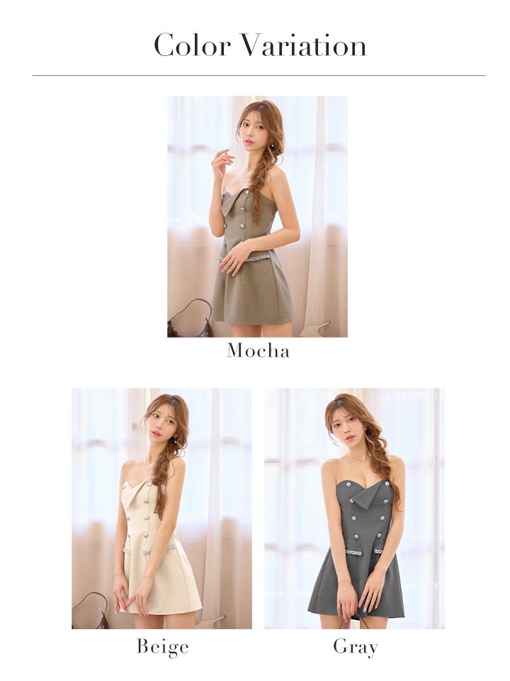 XSサイズあり【ANGEL R/エンジェルアール】ベアトップ/ Wボタン/ ビジュー/ フェイクポケット/ スリーブ/ フレア/ マイクロミニドレス/ キャバドレス[OF2] [AR26805-BE-S260113]