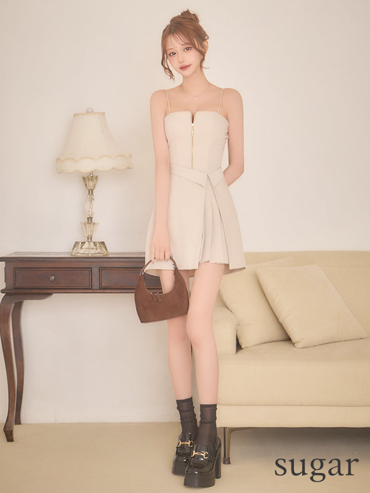 XSサイズあり【IRMA/イルマ】フロントジップ/ アシンメトリー/ キャミソール/ プリーツ/ シンプル/ フレア/ ミニドレス/ キャバドレス[OF2A] [51007-IR-B-S260113]