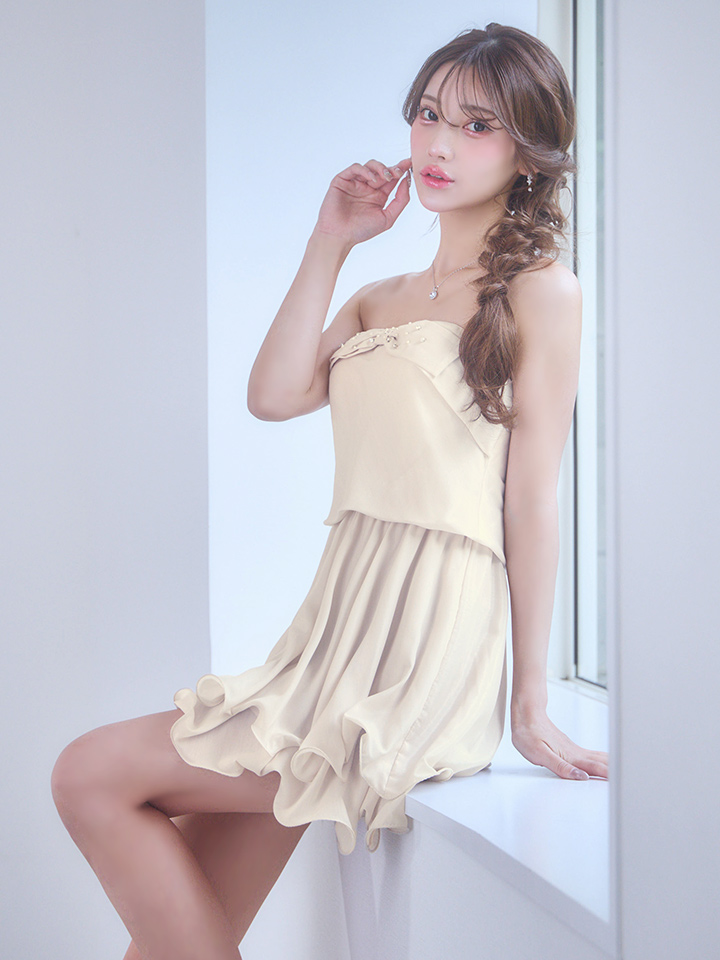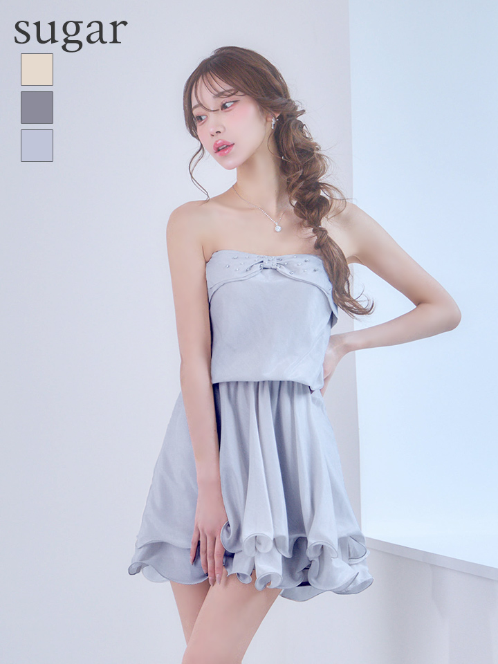 XSサイズあり【IRMA/イルマ】フリル/ スパーク/ ワンカラー/ ベア/ フレア/ ミニドレス/ キャバドレス[OF2A] [51982-IR-CHP-S260114]