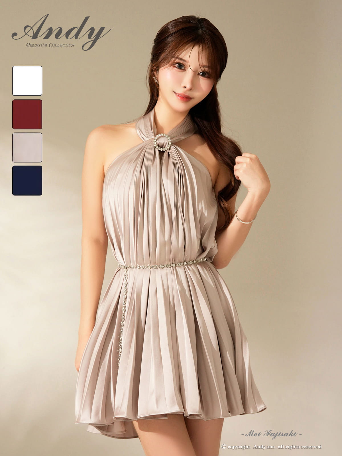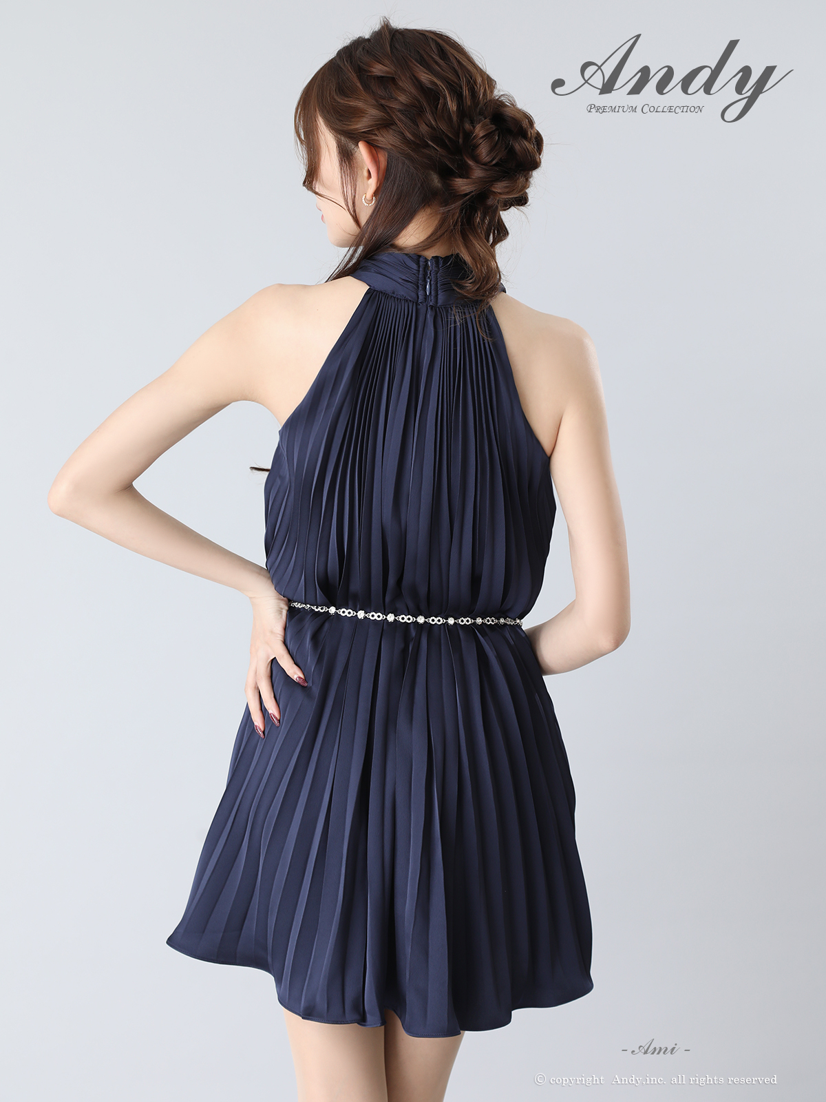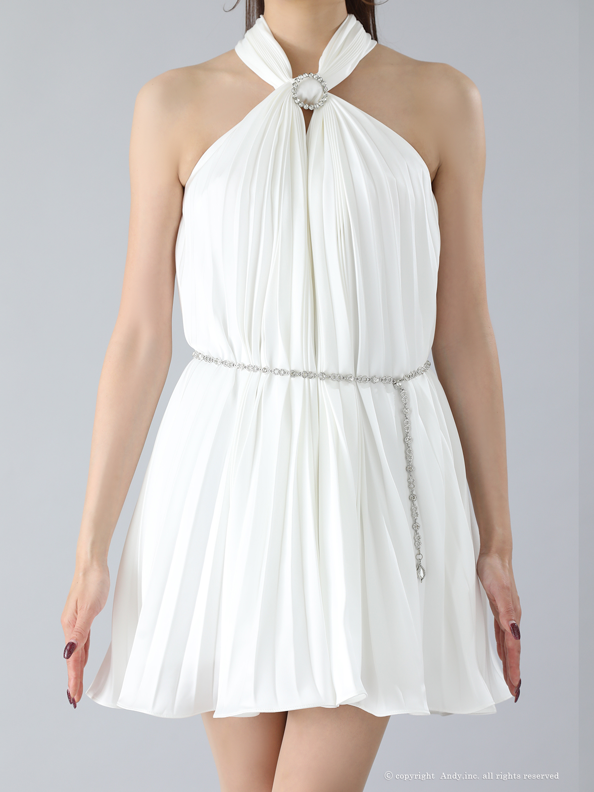 XSサイズあり【ANDY/アンディ】ビジュー/ ホルターネック/ チェーンベルト/ ノースリーブ/ フレア/ シフォン/ ミニドレス/ ワンピース/ キャバドレス[OF05] [ON3043-BGD-S260114]