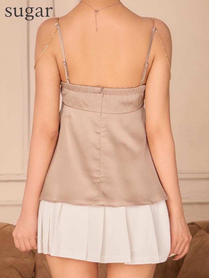 【予約商品/1月下旬発送予定】XSサイズあり【Glossy/グロッシー】チェーン/ サテン/ キャミソール/ セットアップ/ フレア/ ミニドレス/ キャバドレス[OF08] [GL4640-GYGE-S260113]