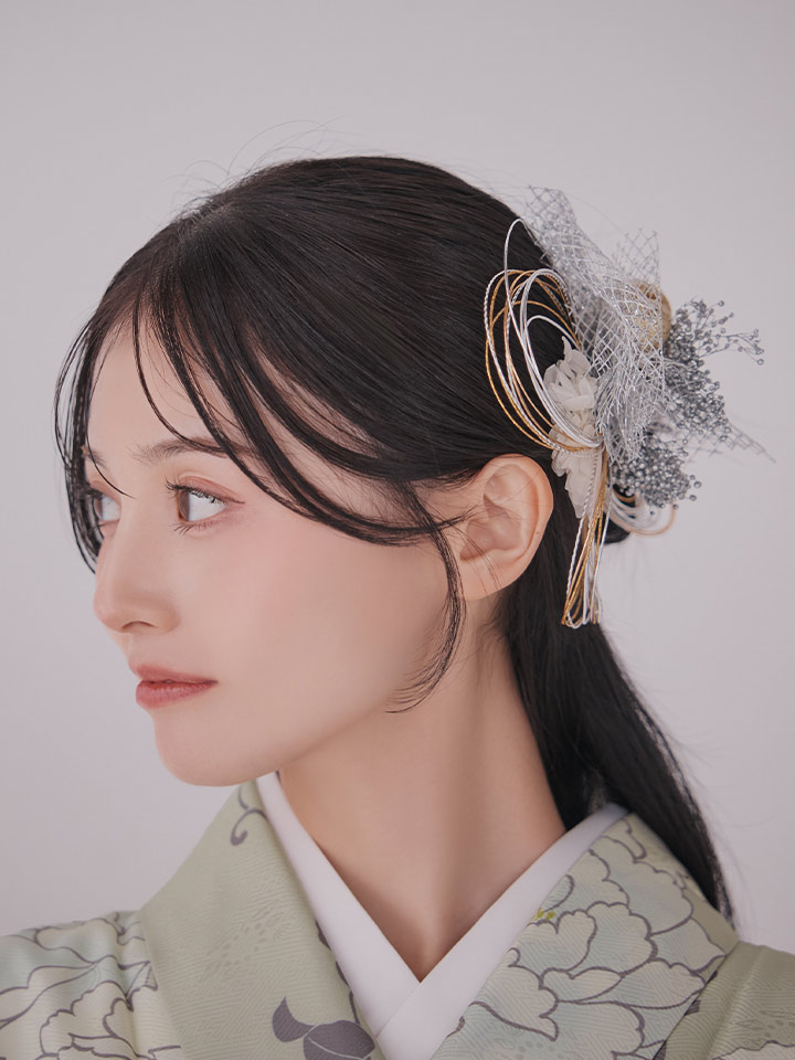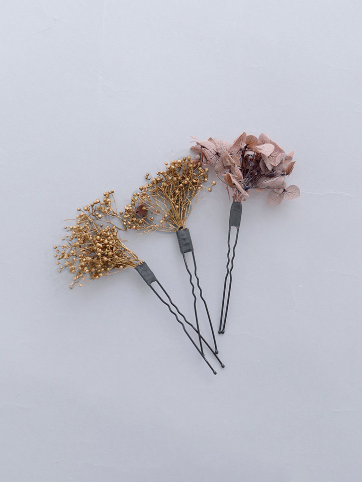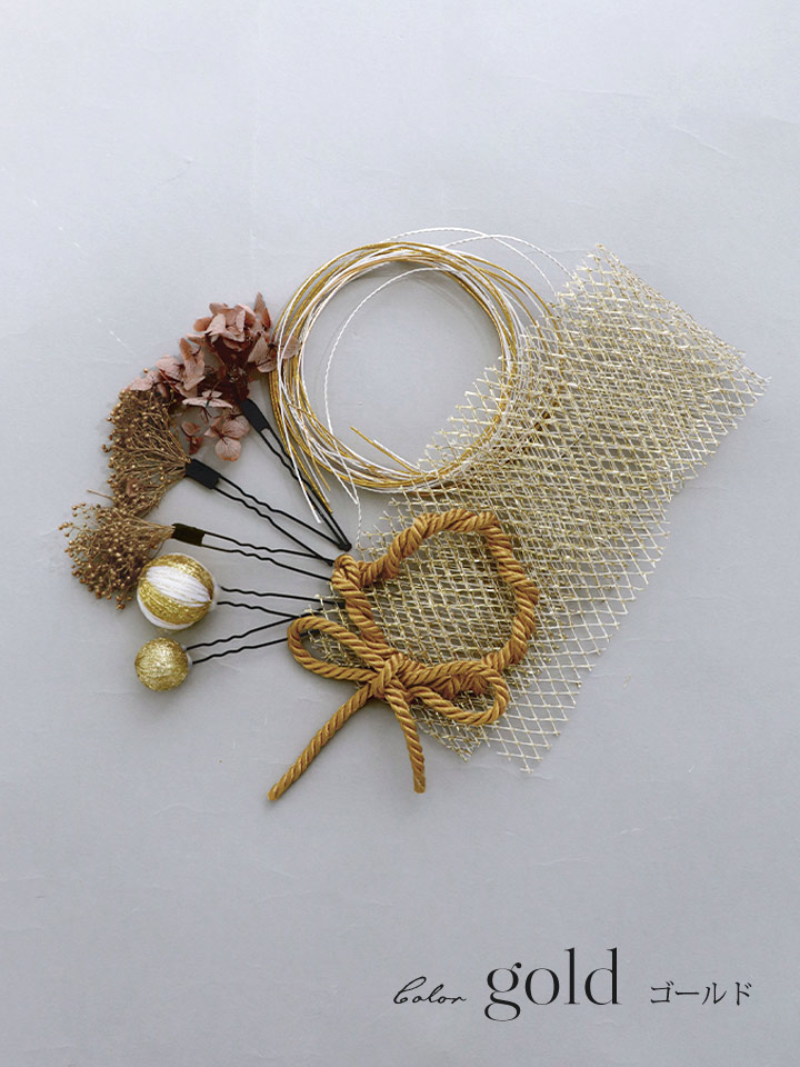 【卒業袴小物】網チュールとドライフラワーのセット髪飾り【2カラー】 [HKA-102-sh-W-F-HKA-104-sh-GD-F-260116]