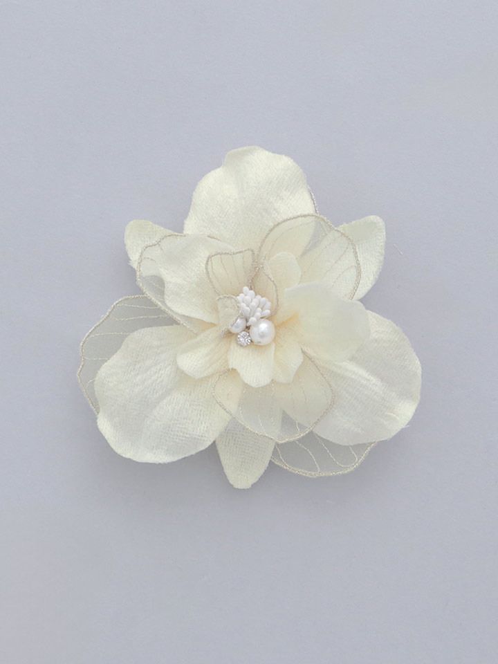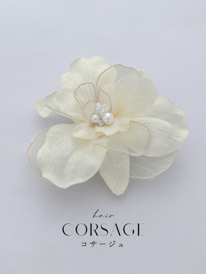 【卒業袴小物】オーガンジー×パールアーティフィシャルフラワーコサージュ【1カラー】 [HKA-117-wk-W-F-260116]
