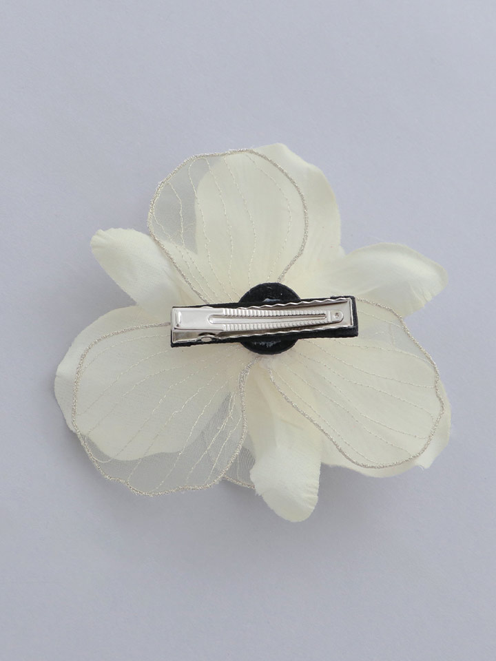 透け感のある軽やかな素材と光沢のある花びらを組み合わせた、気品あふれる大輪の髪飾り♥