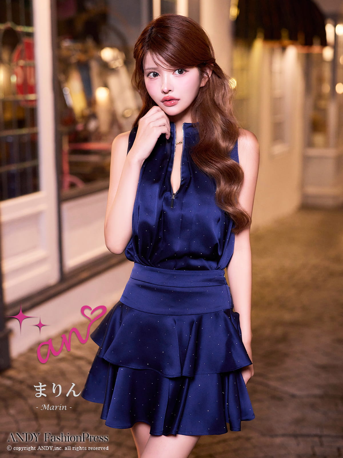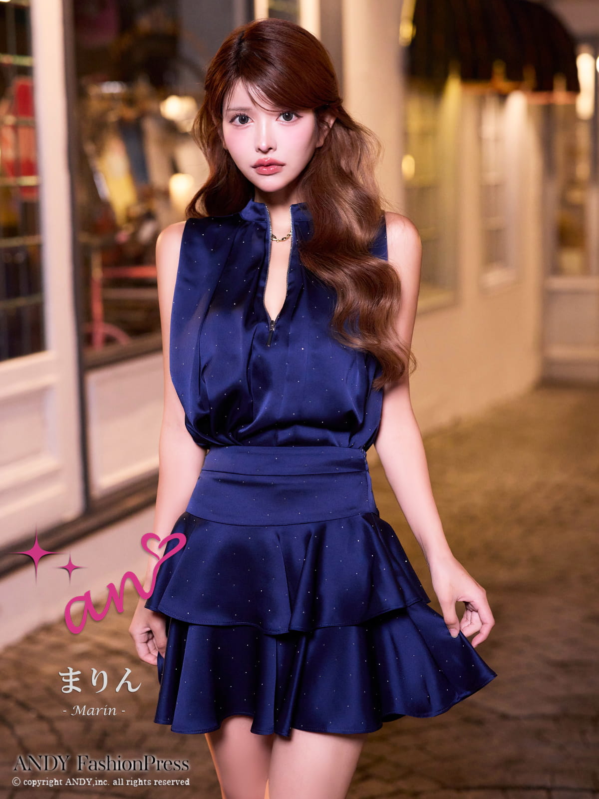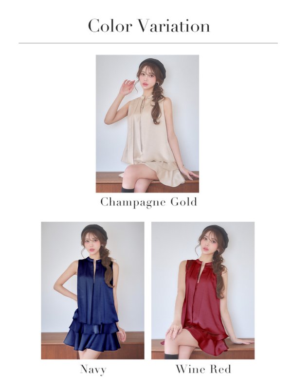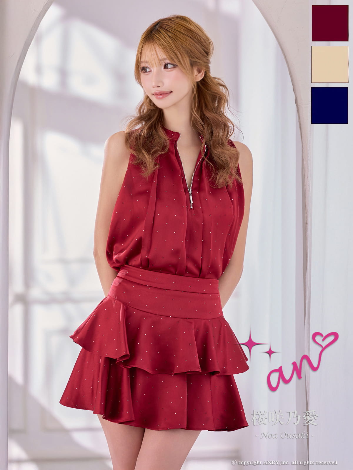 XSサイズあり【an /アン】ラインストーン/ バストジップ/ ノースリーブ/ ティアードフリル/ セットアップ/ フレア/ ミニドレス/ キャバドレス[OF05] [AOC4030-WR-S260114]