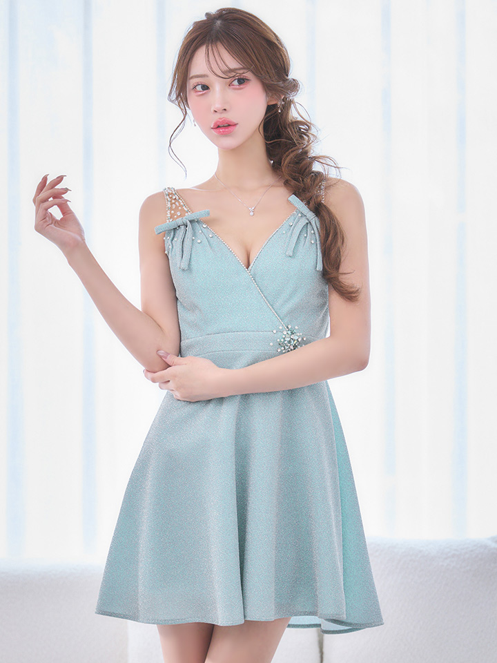 パールビジューxバストリボンが王道cuteなフレアミニドレス♡