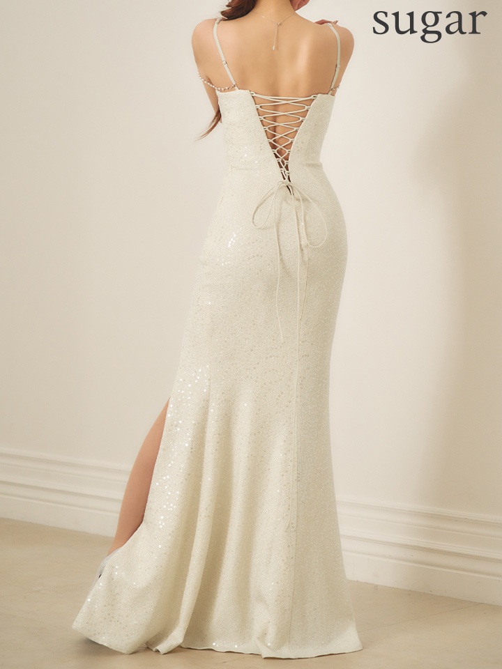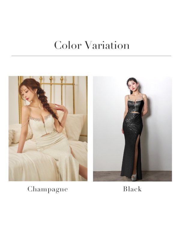 【予約商品/1月下旬発送予定】【IRMA/イルマ】ラメニット/ スパンコール/ バストジップ/ キャミソール/ チェーン/ スリット/ タイト/ ロングドレス/ キャバドレス long[OF2A] [61026-IR-CHP-S260115]