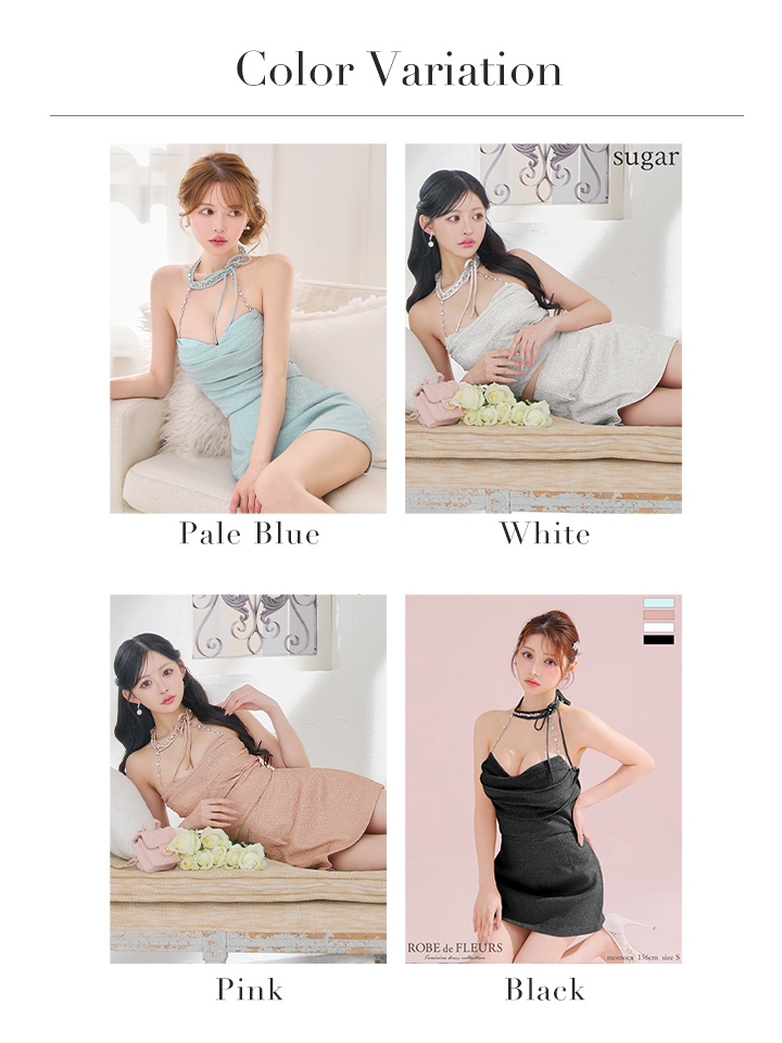 XSサイズあり【ROBE de FLEURS/ローブドフルール】ラメニット/ リボンホルター/ セットアップ/ タイト/ ミニドレス/ キャバドレス[OF08] [FM3772-paleBL-S260114]