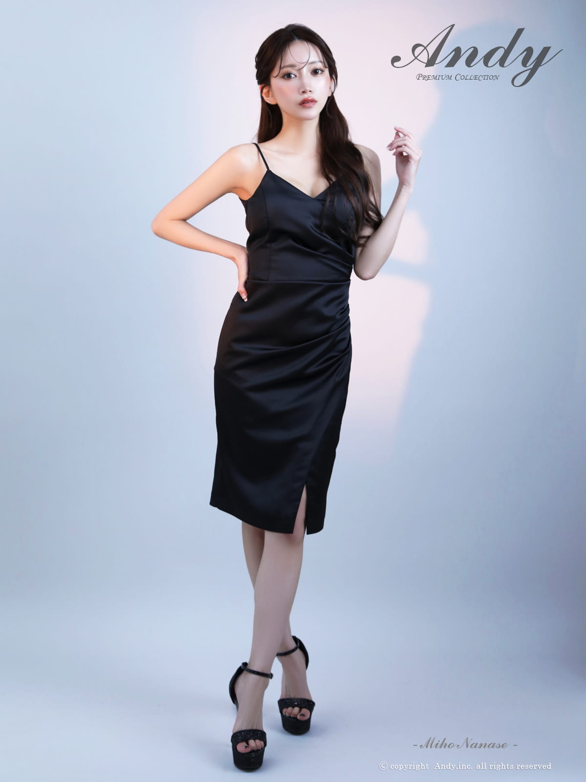 XSサイズあり【ANDY/アンディ】シンプル/ ワンカラー/ キャミソール/ サイドタック/ タイト/ ひざ丈/ ミディアムドレス/ キャバドレス[OF05] [ON3051-B-2601]