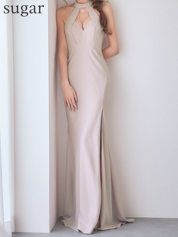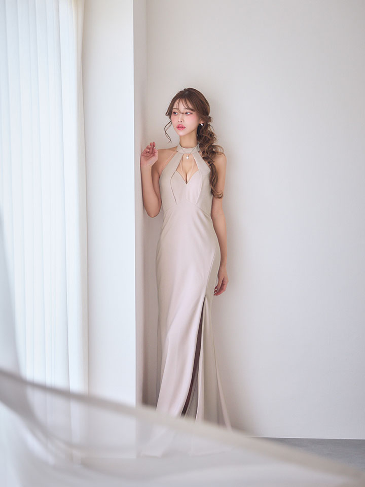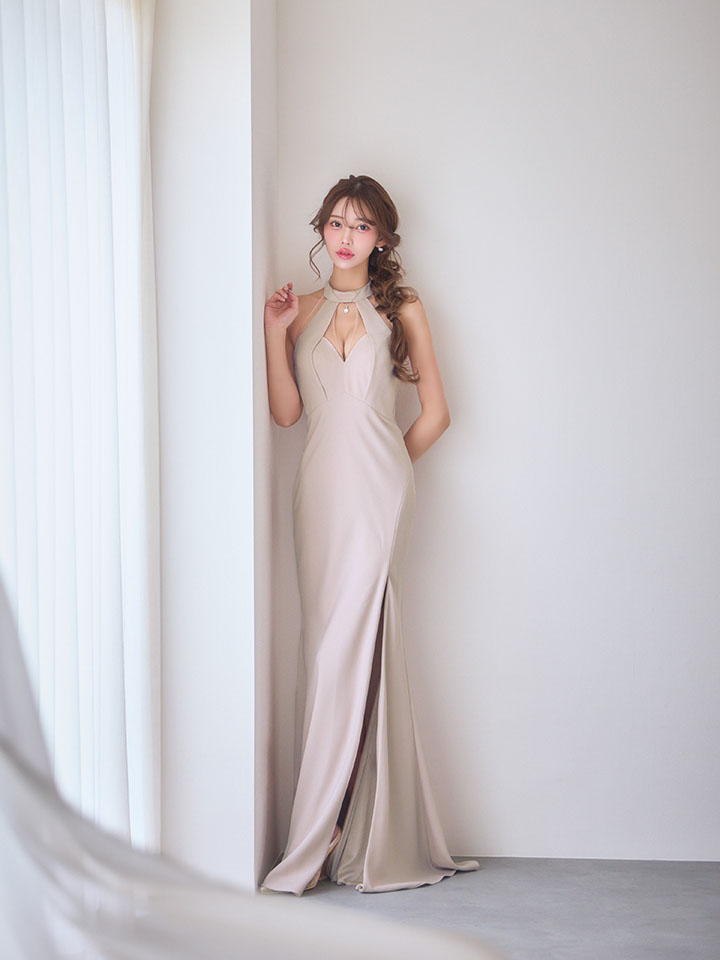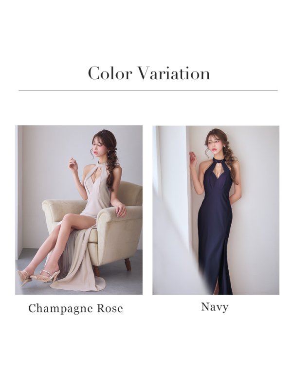 【JEAN MACLEAN/ジャンマクレーン】ホルターネック/ バストカット/ スリット/ フィルム混ニット/ タイト/ ロングドレス/ キャバドレス long[OF2A] [51999-JM-NV-S260116]