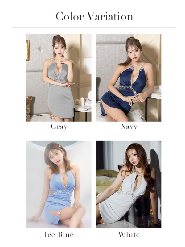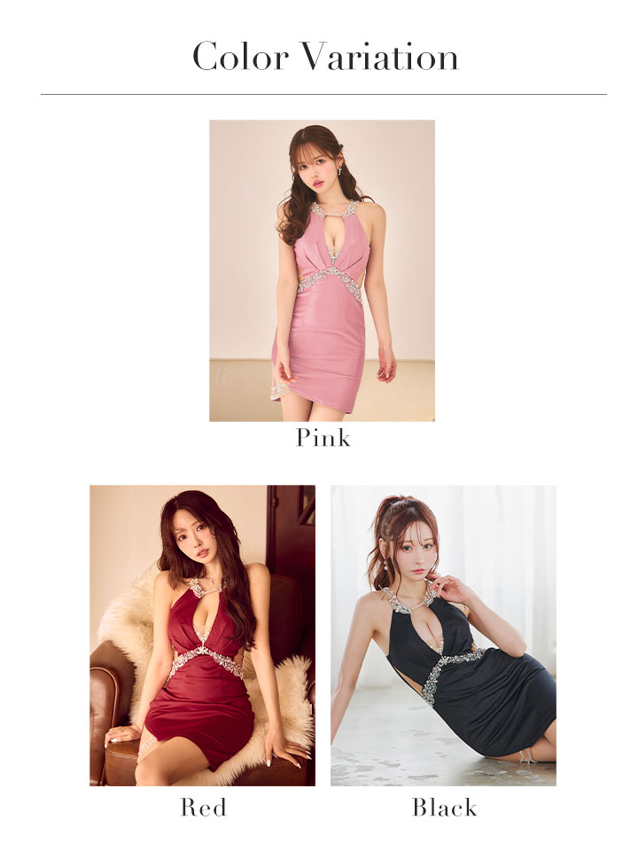 XSサイズあり【ANGEL R/エンジェルアール】ネックチェーン/ マストカット/ タック/ ビジュー/ タイト/ ミニドレス/ キャバドレス[OF2] [AR24240-P-S260115]