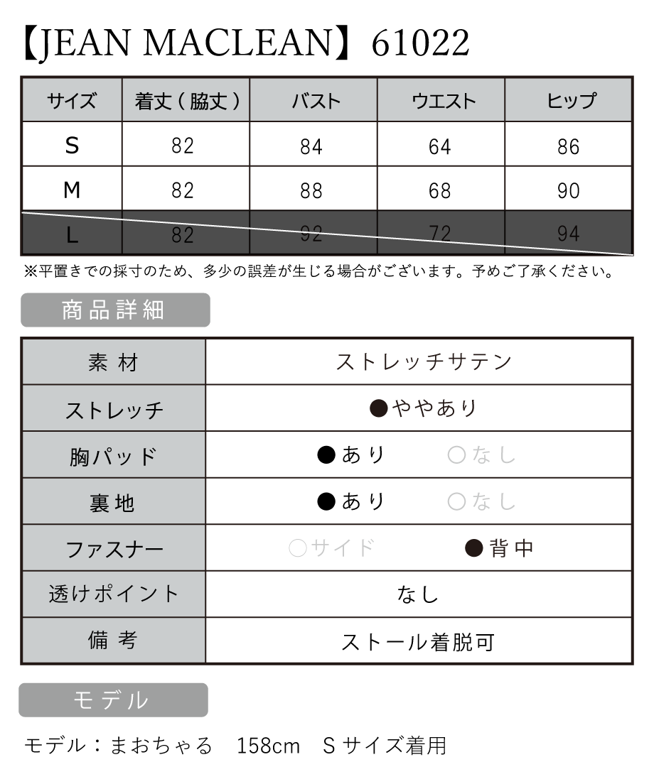 B:84 / W:64 / H:86 [着丈](脇下)約82cm |