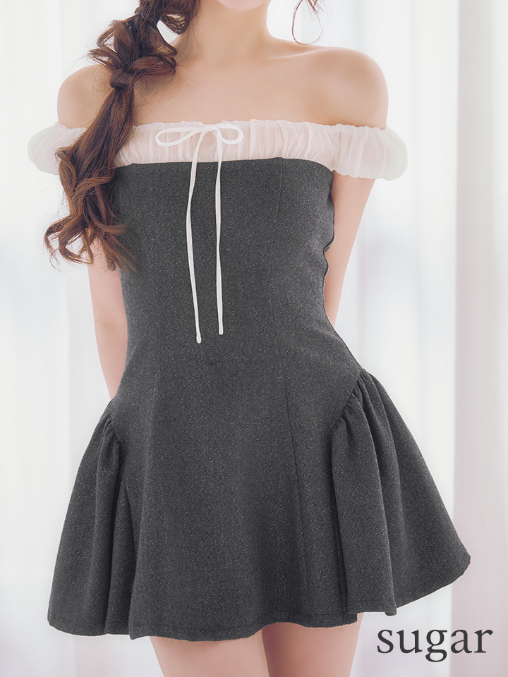 XSサイズあり【ANIER./アニエル】【ROBE de FLEURS/ローブドフルール】Glitter flannel off-the-shoulder mini dress/ グリッター/ フランネル/ オフショルダー/ ミニドレス/ キャバドレス[OF08] [ANIER4058-GY-S260117]