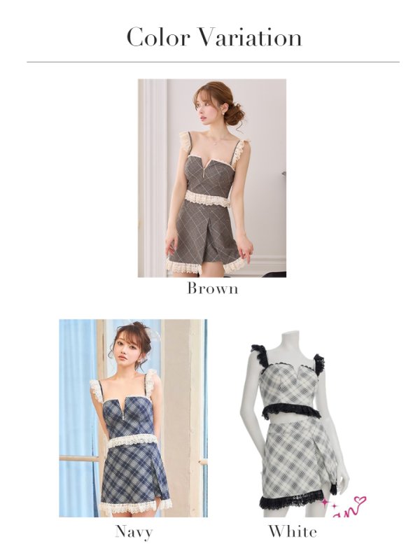 XSサイズあり【an/アン】チェック柄/ レースフリル/ バストジップ/ キャミソール/ アシンメトリー/ セットアップ/ フレア/ ミニドレス/ キャバドレス[OF05] [AOC4042-BR-S260117]