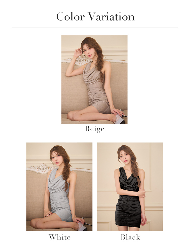 首元から胸元の優雅なドレープが奥行きと立体感を生み出し、バストをより美しく見せます。