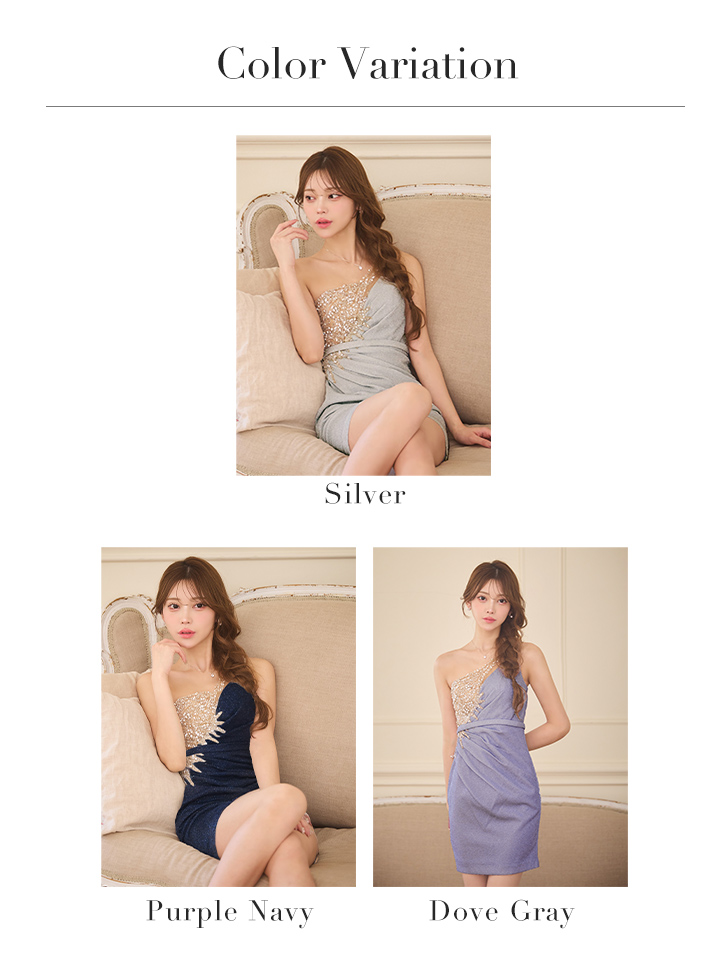 XSサイズあり【IRMA/イルマ】ビジュー刺繍/ ラメニット/ ワンショル/ タック/ タイト/ ミニドレス/ キャバドレス【HC02】 [41644-DoveGY-S260117]