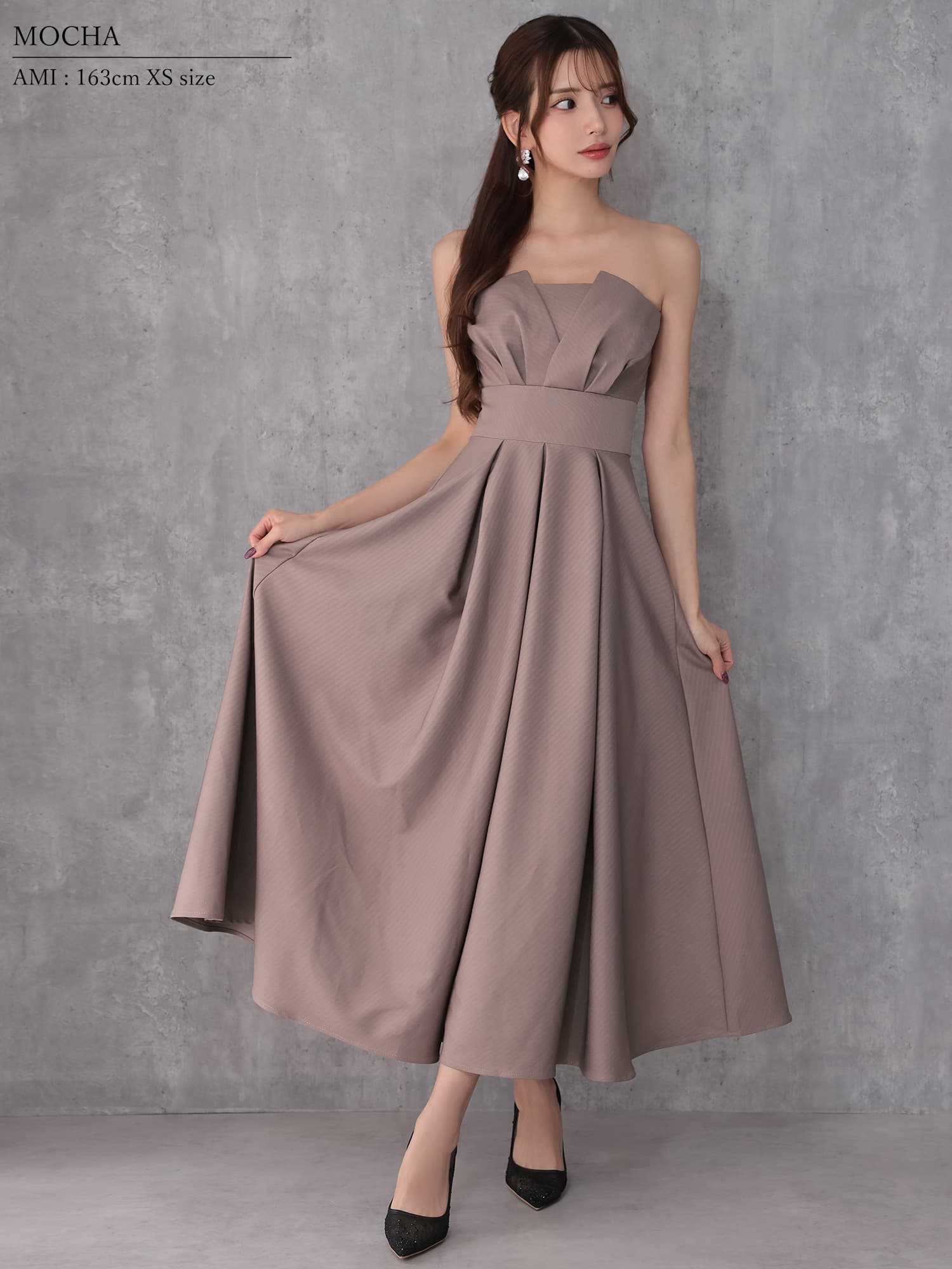 XSサイズあり【Veautt/ヴュート】【OF05】べアトップ/ バストタック/ ウエストマーク/ プリーツ/ フレア/ ワンピース/ ロングドレス/ キャバドレス [VT082602-MOC-2601]