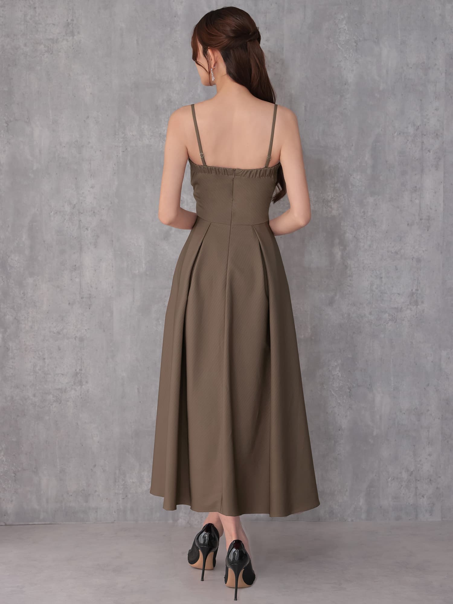 裾に向かって広がるフレアシルエットが、動くたびに上品な表情を演出します。